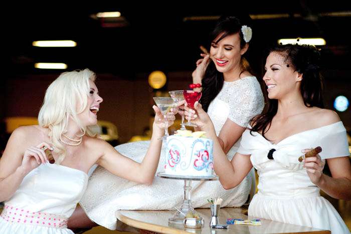 I love this shoot because not only does it look like it was a mountain of fun, but the girls that put it together are the best of friends – make it even more adorable methinks! Photographers Michelle & Hanssie had the idea for this ‘retro cars and vintage dresses’ shoot and enlisted the help of a bunch of their industry friends to help them. The venue, a car museum called Astor Classics Events Center, had been thinking about opening it’s doors for weddings and receptions so the shoot provided the perfect opportunity for some publicity…didn’t the shots turn out great? I know I’d love to get married there – what a load of awesome locations for photo ops!