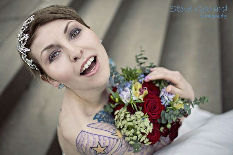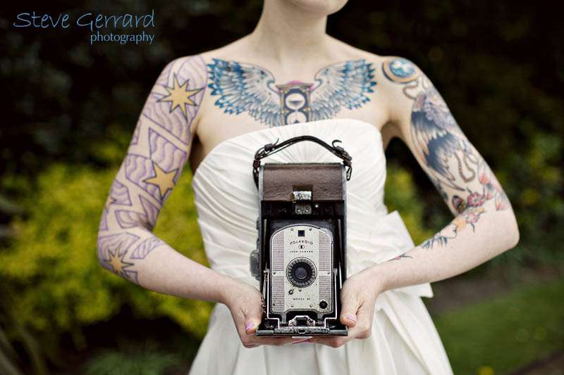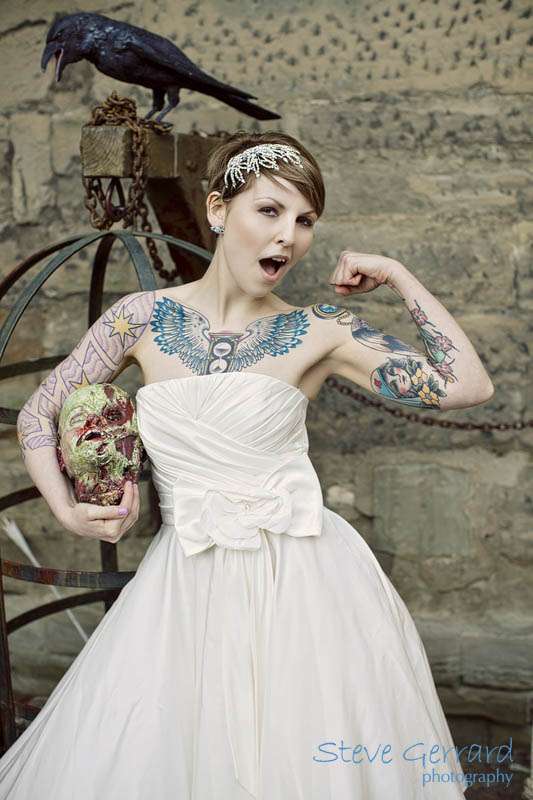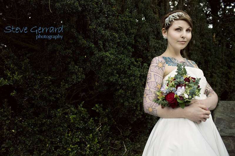 Steve wanted to shoot two different sides of the bridal story so he found Steph, a classic English rose (you can see her session here)and Laura – the gorgeous, heavily tattooed chicka you see below. Rock-the-hell-on!