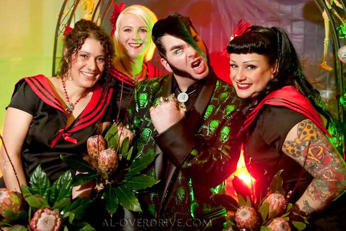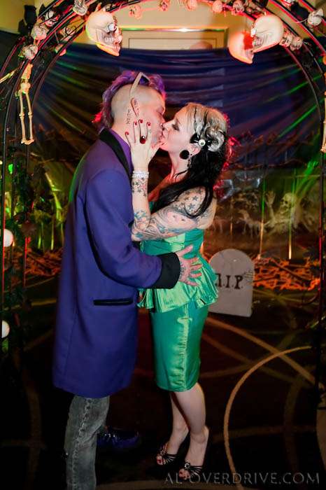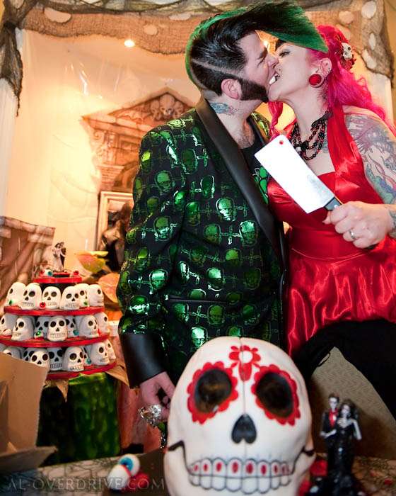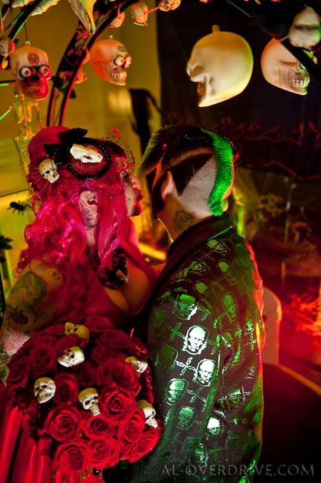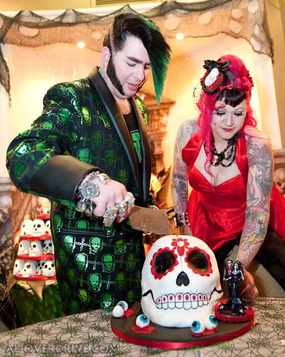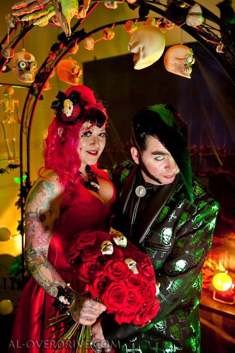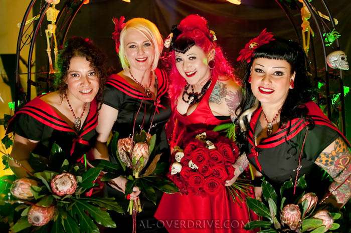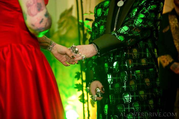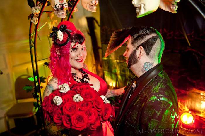 The couple run retro rebels store and the horror-themed clothing company Kreepsville 666 so their wedding was always going to be a spooky special. ‘Ghoulmore’ actually is Ash’s surname and they pretty much live Halloween everyday, so it was fitting to pick a horror / b-movie inspired Wedding theme (be sure to check out their awesome invite at the end of the gallery too!)