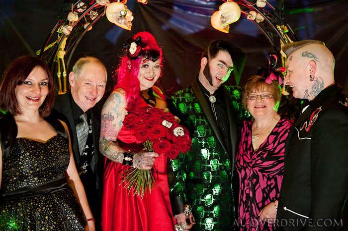 Michelle looked every bit the rock princess in her two dresses, firstly a custom made creation from Limb Clothing, and for the reception/evening a gorgeous Vivien of Holloway gown.