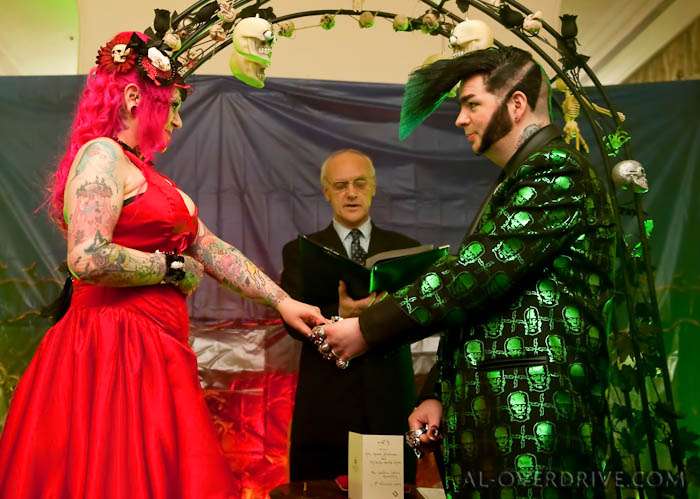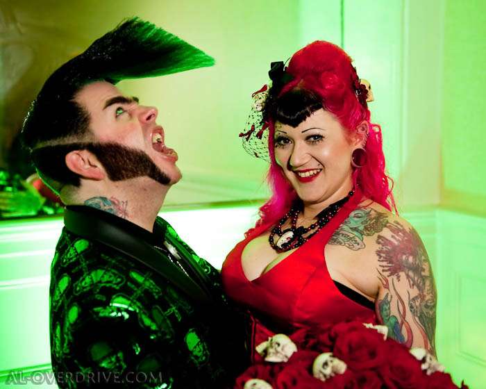 This ghoulish, retro horror themed wedding may not be everybody’s cup of tea but I can’t help but be a little over-excited about it. So. Much. Originality! Photographer Al, who has just been shortlisted for ‘Tattoo Photographer of the Year’ was keen to tell me all about Ash and Michelle Ghoulmore’s (oh yes!) friday the 13th wedding.