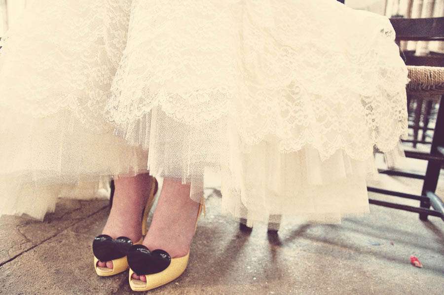 A few days before the shoot I wondered if we might be able to get some flowers to use. I called wedding planner and general fountain of all wedding knowledge – Penny Merricks of TigerLily Weddings to see if she could put me in contact with someone who might be able to help. She told me that she’d ask her friend Chantal of Chantal Flores Design to call me and see if we could work something out. This was the day before the shoot, but after a brief phone call (while she was at the flower market) she knew exactly what I wanted and bought the flowers then and there. She said she would happily get some blooms to us the next day! They we’re beeeautiful and I haveto say, a lot more gorgeous than what I had for my own wedding. We decided to go for yellow to match the bow I’d picked on my dress and of course my Vivienne Westwood shoes.