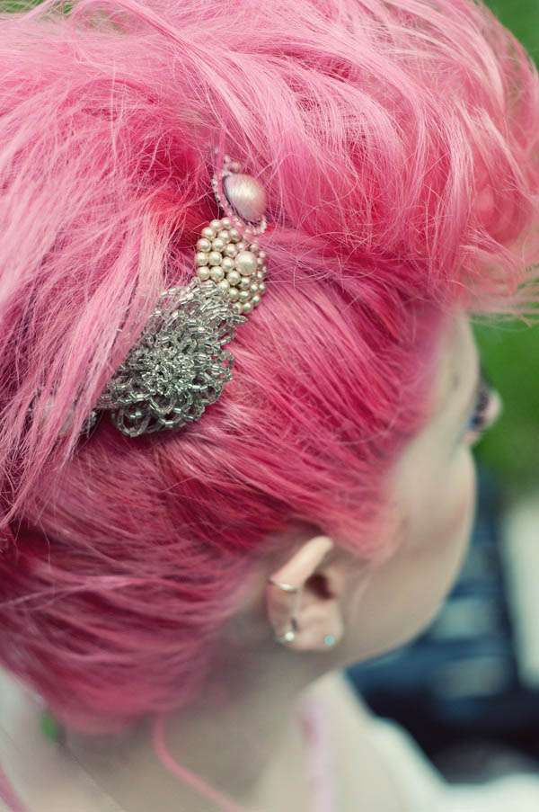 ♥ Hair band: Magpie Vintage – Prices for pieces made with your own items of vintage jewellery range from £100 – £300 approx depending on the detail. One of a kind and bespoke pieces can be found on their website and items can be made to your own specifications.