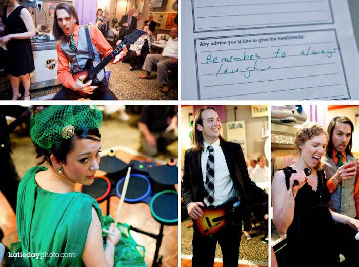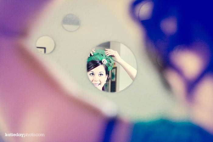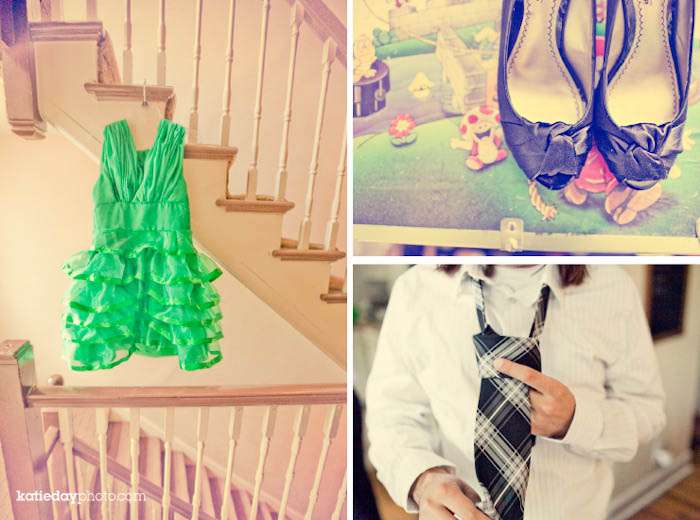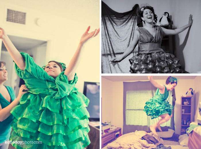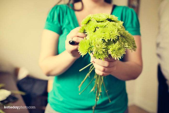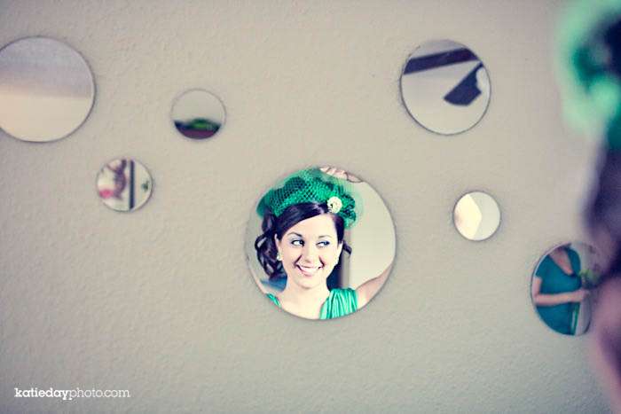Erica’s dress was also a perfect reflection of her. “First of all, green has been both Ryan’s and my favorite color since as far back as I can remember” she began. “Secondly, I’m not particularly a fan of wearing white- I’m too pale. And I’m definitely not a fan of the oh-so-popular strapless wedding dress. There is a very small percent of brides who can actually pull that off. So I wanted something different, something classy, something fun – something me. I looked at a lot of dresses online and found two dresses I liked the top of one, the bottom of the other. So I sent them to my fashion and design genius friend Natalie Julich, told her what I wanted and that I wanted it green. She photoshopped the two together, made it green, and put my face on it and voila the idea was born. I knew Ryan’s mom had made a wedding dress before, so when Ryan and I told our parents that we were engaged, I asked her if she would make it. She gladly accepted. Through trial and error, she made the dress just right- green and fluffy! Not to mention gorgeous!”
