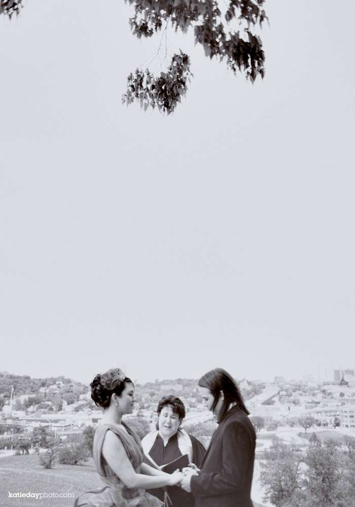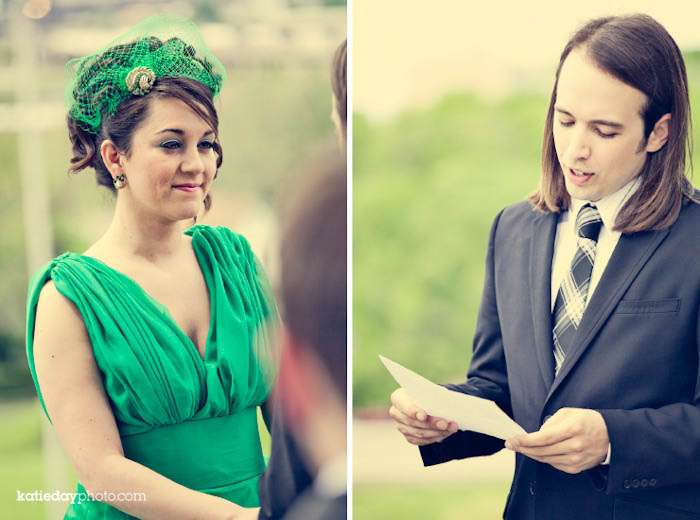 “Ryan and I originally thought we would just have a courthouse wedding, and then have a big party. Of course, our parents were not so thrilled with the idea. We also did not want anyone else planning or making decisions for OUR wedding/party, because we did not want it to be the same old wedding and the same old reception that we’ve all attended twenty times before. Nothing against traditional weddings, we’re just not traditional. We also were looking to keep it cheap simply because we think it’s silly to spend tens of thousands of dollars on a few hours. All we really needed was the two of us looking snazzy and an amazing photographer.”
