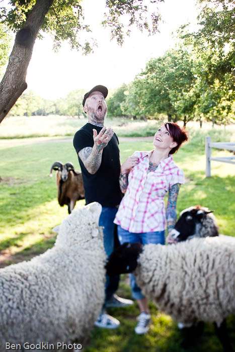 “The couple , who are fierce backgammon players, were so fun and wanted to get some unique shots for their engagement photos! Ben wrote. “They were staying at a cozy little Bed and Breakfast called Settlers Crossing in Fredericksburg to finalize the details of their small wedding at Beckers wine vineyard in Sept. Mandy and Braxton had many tattoos but two that were particularly meaningful. They both had “Soul Mates” tattooed on both hands so when they joined hands they would always be reminded of their love. There was an abundance of farm animals on the property including horses, sheep, and donkeys, so we couldn’t resist using them in the shoot. Then we headed to a local land mark called Enchanted Rock and made the 20min hike up just in time to watch the sunset, and the full moon rise… It was magical!”