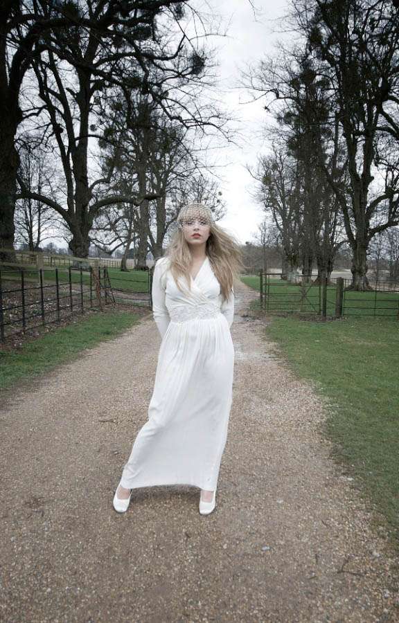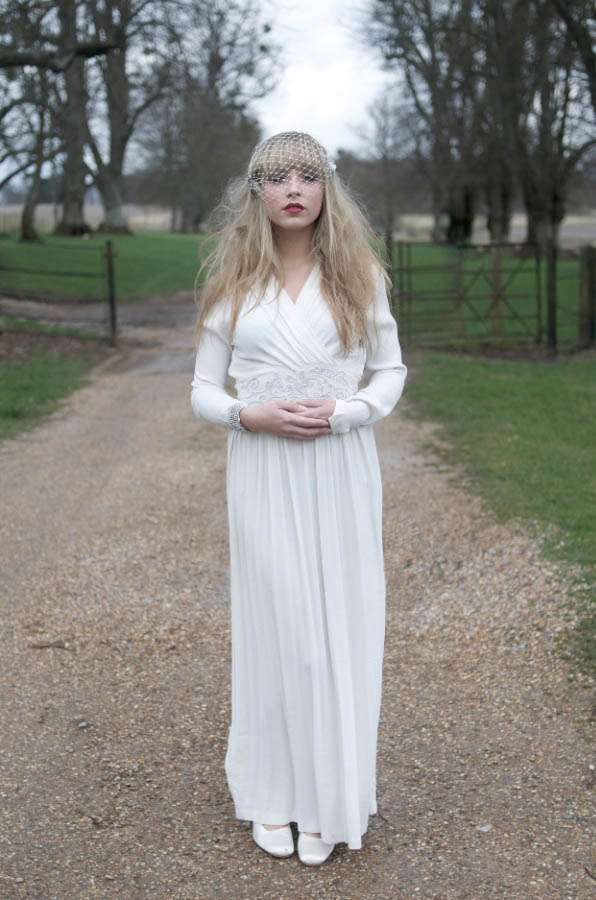 The model, Velvet (yes, her real name!) looks stunning in these genuine vintage gowns. The first, a handmade, full-length, silk gown with short train dated from the1930 is particularly stunning no? The dresses were all found at Hampshire Wardrobe in Winchester and Angela styled the shoot herself. She made all the accessories (including the veil) to perfectly match her vision.