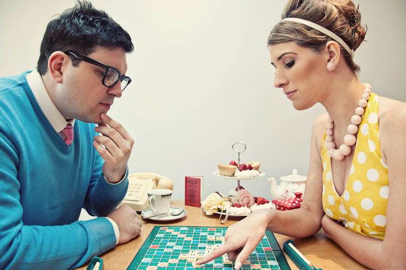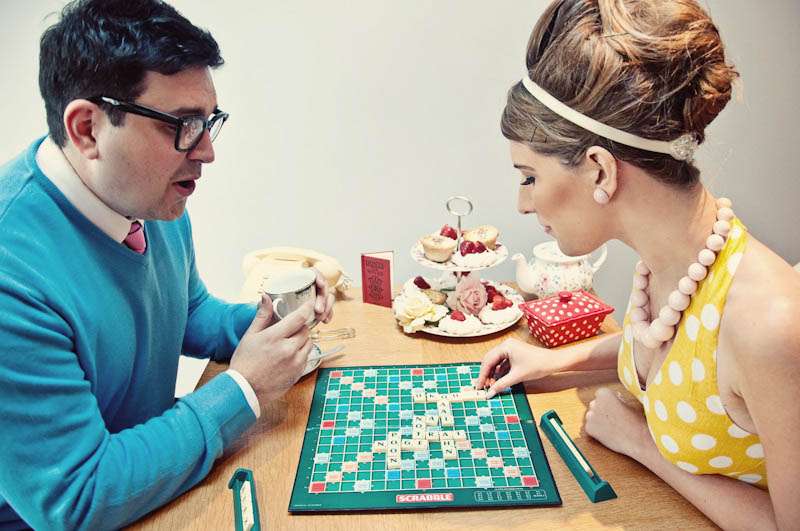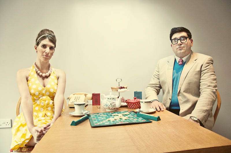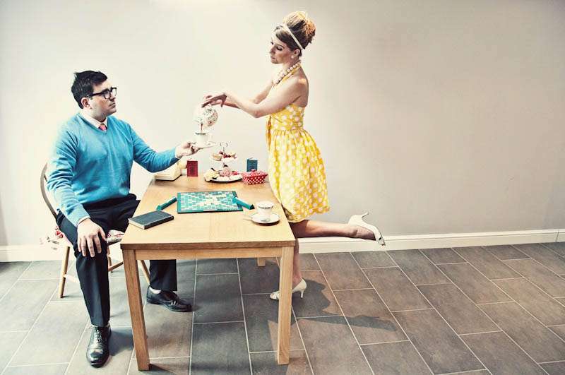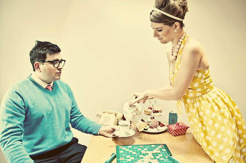 Alex & Claire’s retro, 50’s housewife engagement is aces! Not only because it was shot by one of my bestest wedding buddies, Emma Case but because it has tea, cakes and scrabble!