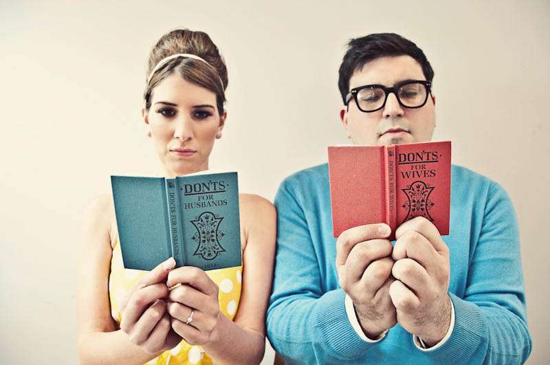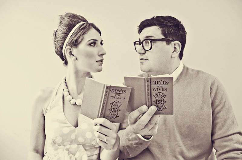“Alex called me about a month back asking if we could do some pictures for their invites and that they had a few ideas (brilliant)…. I arrived at their house and they were both dressed in full 1950’s get up and had the table set ready for their photo shoot! Love it! They wanted to try and do the ‘1950’s how to be a good housewife’ thing and they really got in to it… I LOVE couples like that… no I really mean it… L..O..V..E!”