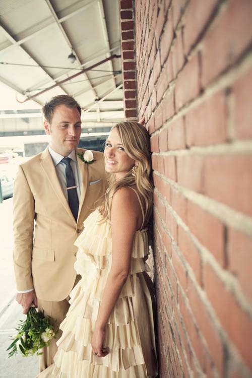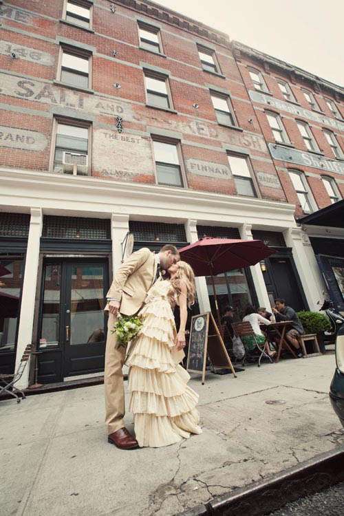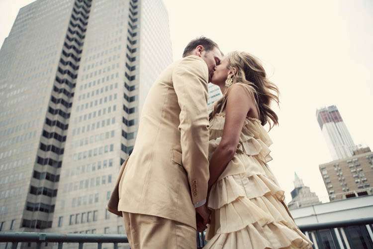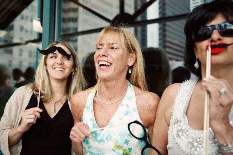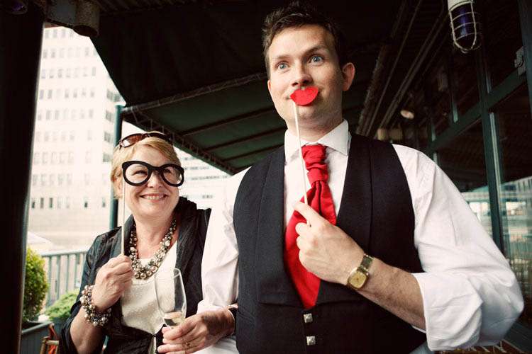 However this month they decided to have a big reception at Bridgewaters by the South Street Seaport to celebrate with all their friends and family. Courtney looks incredible in her modern J Crew ruffled dress and Miu Miu shoes- in fact so much so that someone stopped them in the street and asked if they were models or if they were actually getting married! The reception looks like it was a lot of fun – fake glasses, moustaches and lips never get tired!