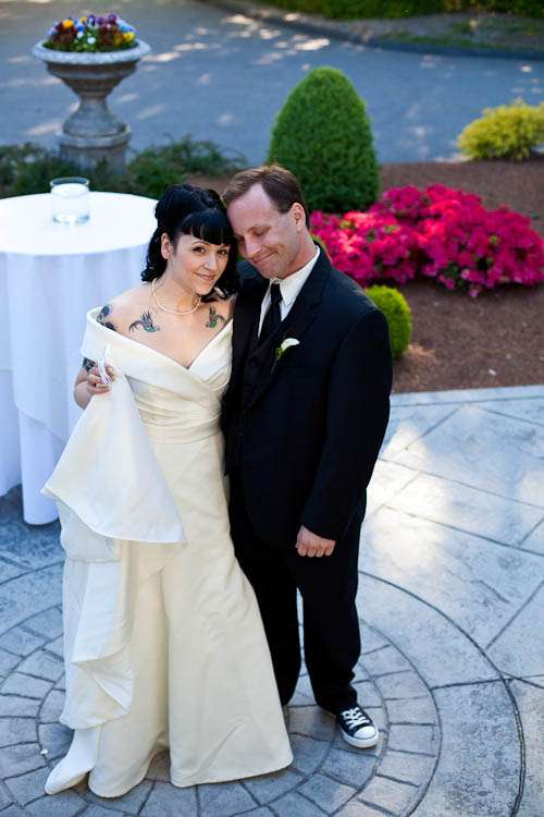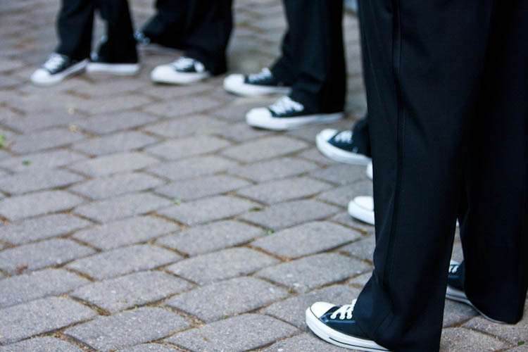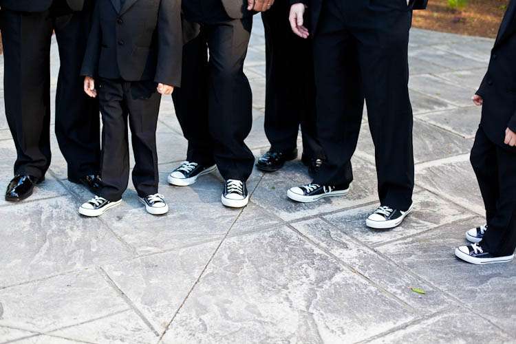 My husband wanted to go with the low-top Chucks. He hates conventional suits and tuxes, so he thought having the whole grooms side wear them (including the ring bearer) was a nice touch.”