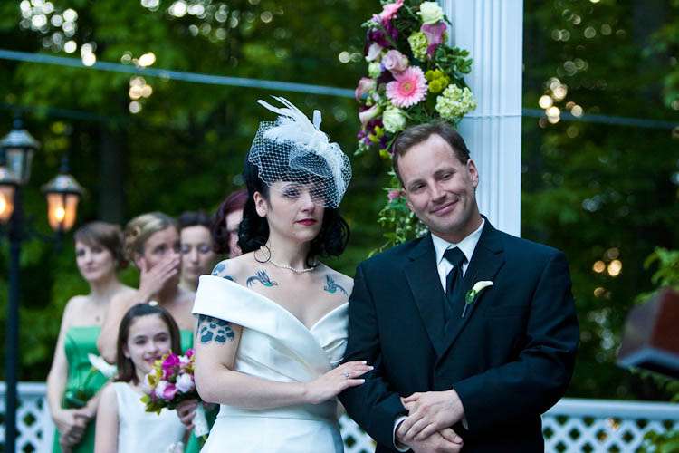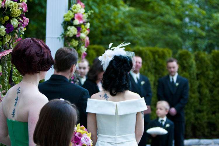 Sara-Anne & Michael’s 1940’s inspired wedding had some really great touches. They balanced the classic look with quirky details so to make their wedding a perfect mix of tradition and personality. The wedding took place at Saphire Estate, Sharon, Massachusetts in May and Sara-Anne wore a gorgeous Oleg Cassini dress which showcased her ink in a classy yet cool way.