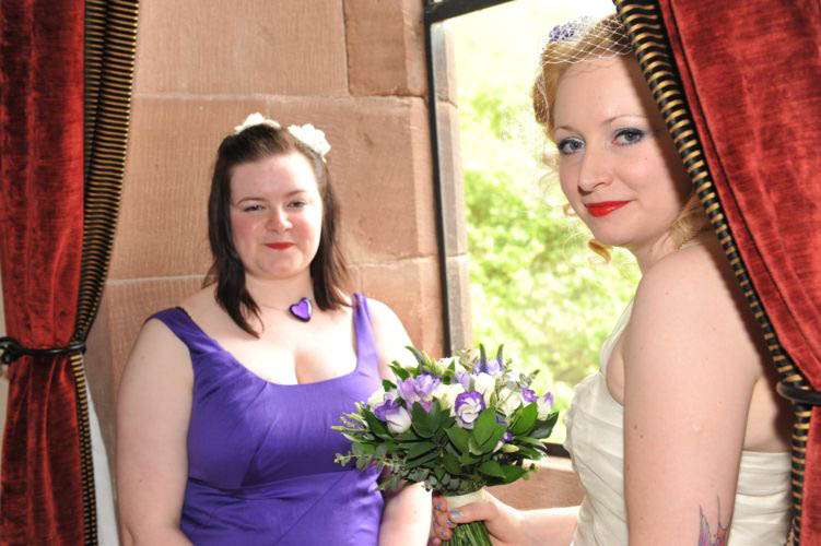 Their laid back, diy heavy wedding was held in the amazing Peckforton Castle in Cheshire, UK “We didn’t want to fall into the usual traps of spending a fortune so we made all the invitations, menus, place settings ourselves, decorated the tables and venue, my maid of honour made the cake toppers and my mum made the cake. We had bubbles for our guests to blow instead of throwing confetti…Oh and I’ve only known, my now husband, 8 months! We met last year at a track weekend at my brothers RAF base and cheesy as it sounds, it was love at first sight. We knew we were meant to be together so i quit my job in Chester, got married and moved into a house on his RAF base in Norfolk! We planned the whole wedding in less than 3 months cos we couldn’t wait to be together!”