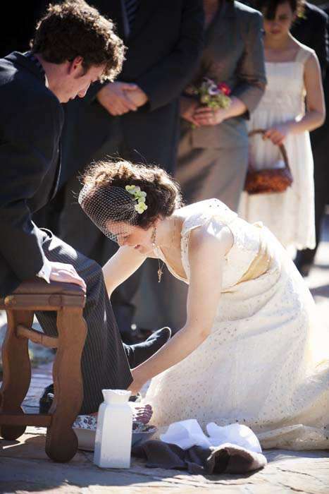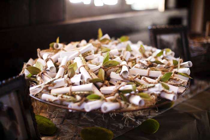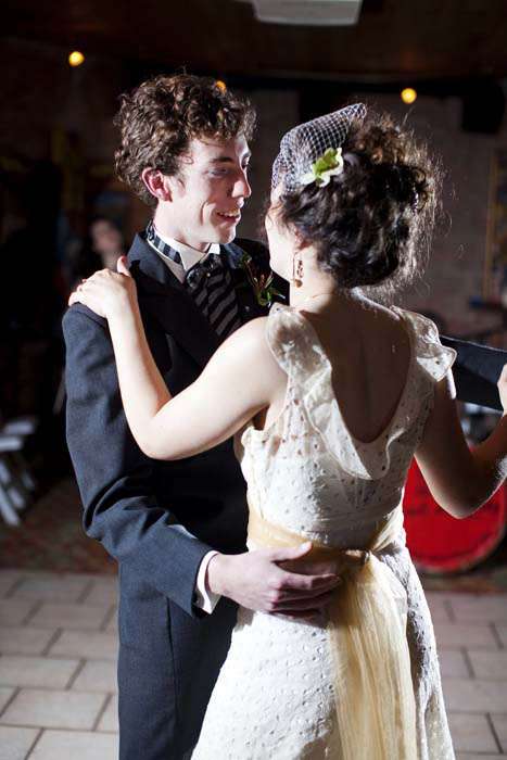Instead of favours, the couple donated beehives to a family in need through Heifer International and made little slips of paper with twine to let their guests know. Claira wore a dress which belonged to her Great-Grandmother which she had altered a little around the neck and bust. “It was so much fun to wear such a beautiful and meaningful gown” she said. Bryan helped her find her shoes and she was very careful about choosing her accessories, “I wanted something that was a little funky and 1930’sish. I found the earrings on Etsy and the necklace I wore was my Great Aunts (who’s wedding band I received).”