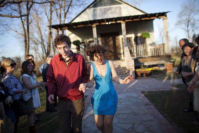 The wedding had a family orientated, diy feel to it with the bride’s Aunt helping with the flowers and even their photographer Kelly’s Mum making the cake! “The cake itself is based off of a ceramics piece I made early on into my studies as a potter here at the Savannah College of Art and Design” Claira continued. “Hill Country Village has a man named Bill who is incredibly on top of his game that makes delicious food and was more than happy to accommodate our vegetarian taste buds.”