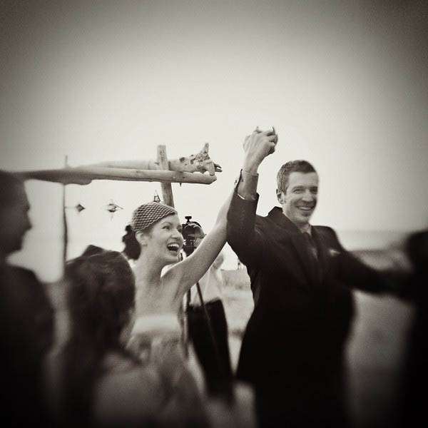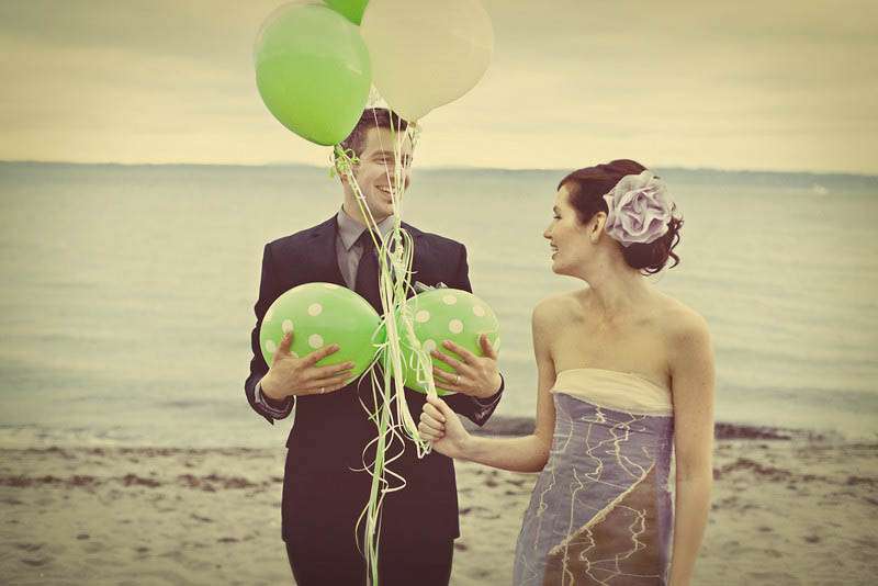 Dave is a carpenter by trade so he made driftwood candle holders for their guests’ gifts as well as building the amazing ceremony arch, also out of driftwood. The ceremony was really special to them and took place on the beach. “Our dear friend Chad married us and our ceremony was a fusion of Native American, Buddhist, Christian and Indian elements that flowed together beautifully and truly represented us” Laura continued. “I made a garland from pages of Rumi poetry to add to the decor, and my sister and I made some paper flowers our of pages of poetry too. Instead of a flower bouquet, I had a big bunch of balloons that we played with at sunset. We really tried to make as many elements as we could hand-made and personal. We both feel our celebration was better than we imagined it. It feels great to hear so many people say they have never met so many unique people, danced so hard, or been so inspired by a wedding. Eight of my friends have since gone to a poetry slam, and a teacher friend of mine incorporated poetry into her lesson the week after our wedding.”