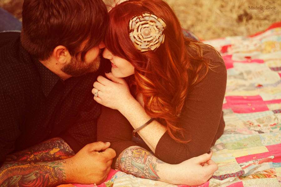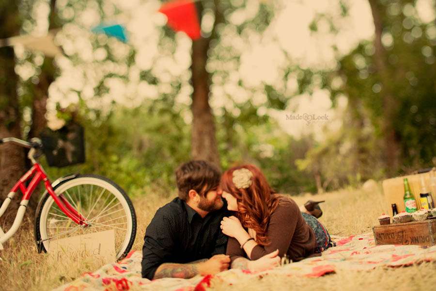 I’ve got a second picnic-themed engagement session to share with you today, however you’ll forgive my repetition when you see these bad boys. Cupcakes + tattoos + bicycles + bunting + everything awesome you could want in one session = LOVE! Candace & Tyler are way.too.awesome. he even calls her ‘Cupcake’ AND she has the word tattooed on this inside of her fingers. Oh swoon swoon swoon… I can’t wait to see/blog their wedding. I might die with anticipation.