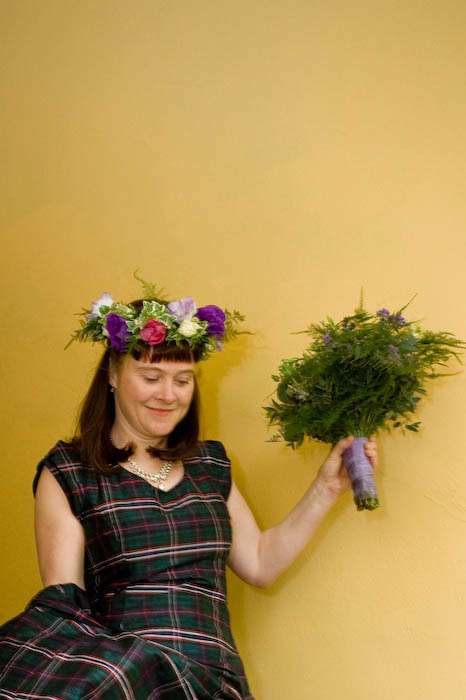 Sue (in the tartan dress) and Shonagh (in the blue dress) were neighbours of Caroline and as soon as she heard the couple we getting married she jumped at the chance to photograph it. Another friend, who also lived in the same building, Vonny Mullock, made both the brides’ dresses. Sue got ready in their flat and Shonagh got married in Vonny’s flat. The couple met on the landing between when they were both ready and headed out together to get married.