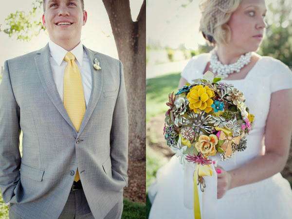 Roni scoured antique stores in the run up to their wedding and payed anywhere from $3 – $12 for each brooch and constructed the bouquet themselves. I understand their wedding and reception was a bit of a diy fest. too so I’m hoping to share it with you when they couple return.