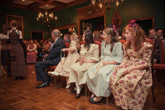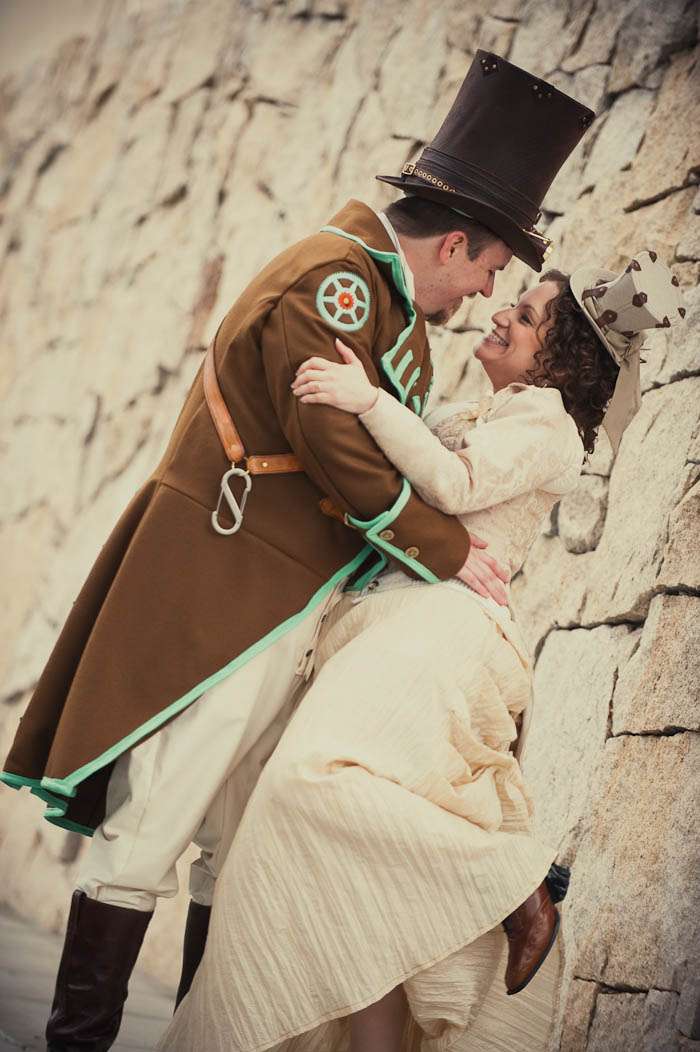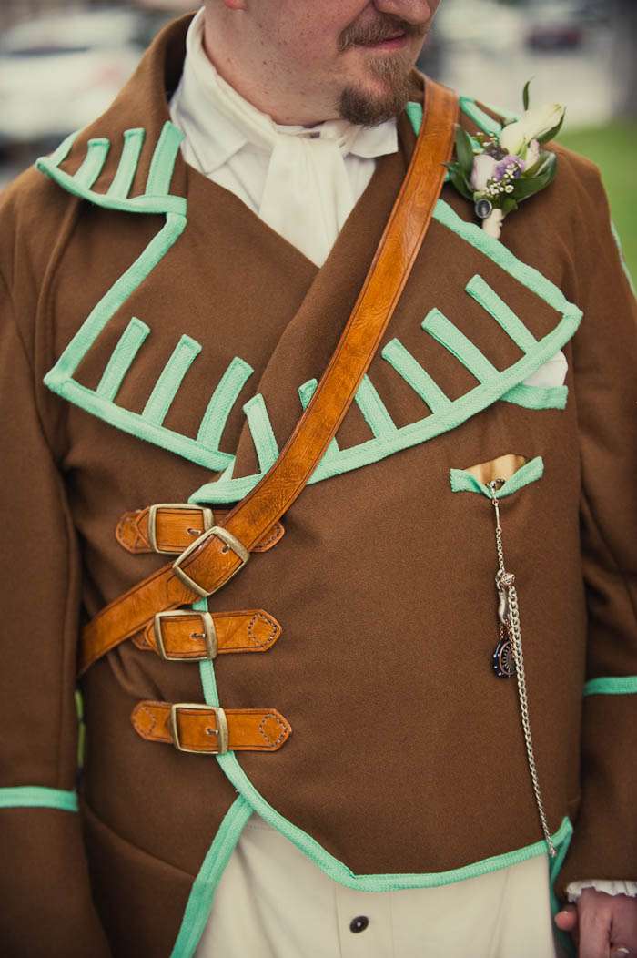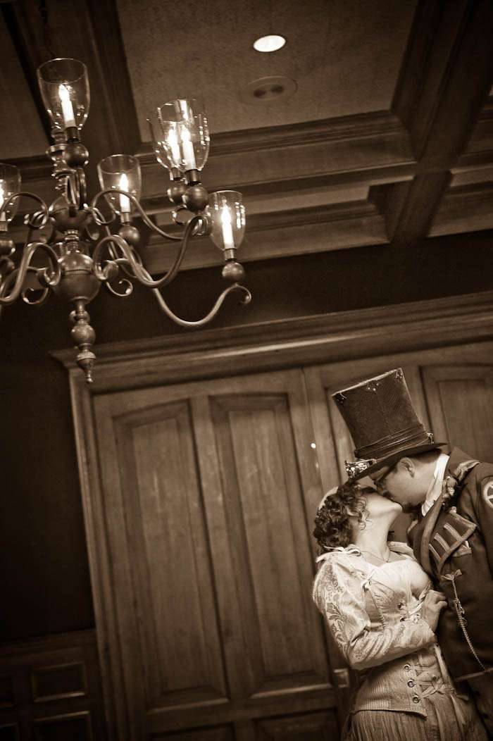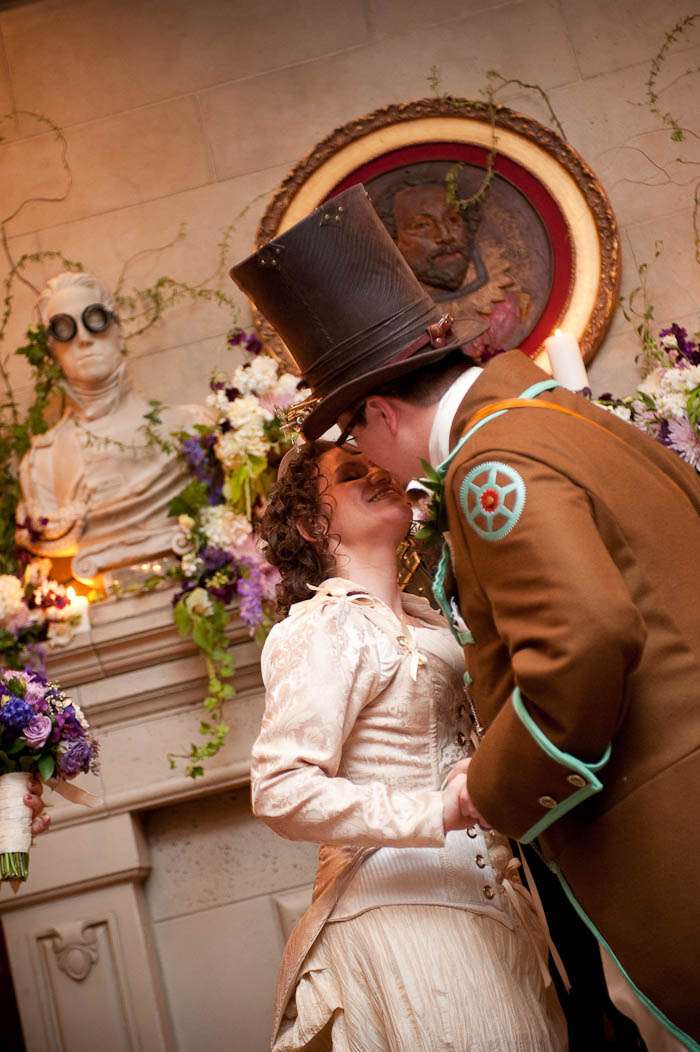 Eric shared their thoughts and inspiration behind their wedding with me. “Both of us love history and are fascinated with the Victorian time period. We’re also both fans of Sci-fi/fantasy fiction, so that’s how our theme came about. Steampunk has it’s roots in Victorian Sci-Fi (Jules Verne, H.G. Wells), but has taken off in the last few years into an aesthetic all it’s own. We wanted something a little irreverent while still being classy, so it fit very well. And it gave our guests a chance to have fun with their outfits! ”