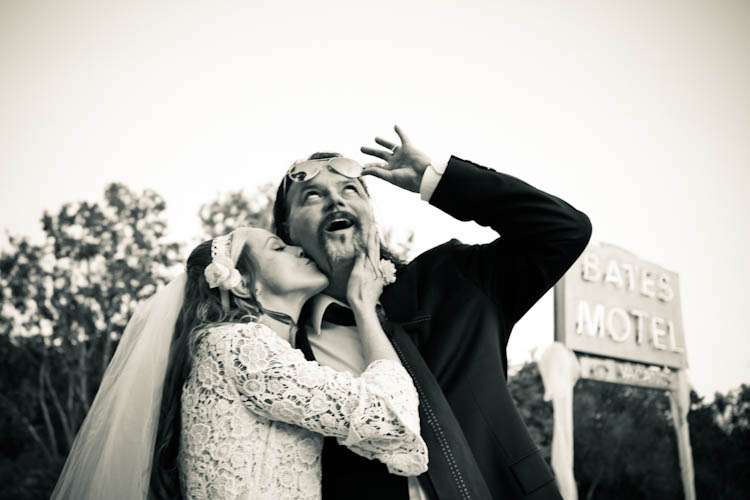 After the ceremony the guests signed the hotel ledger, sipped champagne and posed under the Bates Motel sign before piling back on the bus and heading Michael’s Bar and Grill, Burbank for the reception.