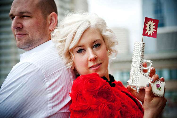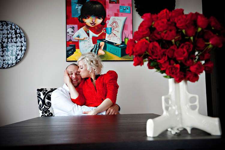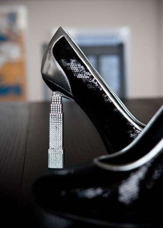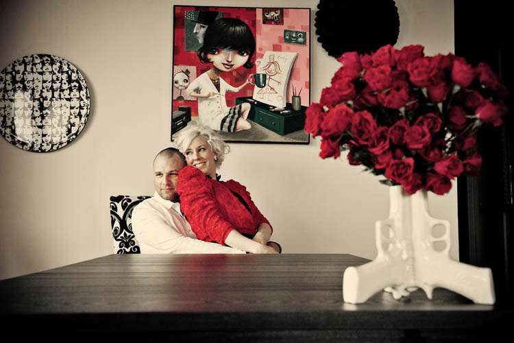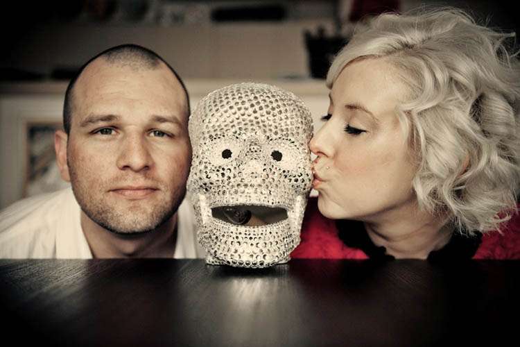 Secondly her shoes are in the design of The Empire State Building (wow!) by Geox and thirdly they have a crystal encrusted skull lamp that they found unadorned in a vintage shop. Danielle & Ed added all the sparkles themselves…I love it. In fact I want one!