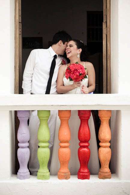 Beatriz & Ricardo got married early this month in Cartagena, a colonial city on the Caribbean coast of Colombia. Born here, Beatriz knew she wanted to return back to this special place to get married. They had a gorgeous civil service a few days before the wedding. “Weddings tend to be so cookie cutter and sooo traditional, we were sure we didn’t want that” the bride told me. “The first tradition we broke was not getting married in a church, we decided to just have a civil ceremony; but a friend of us told us that civil ceremonies were so plain and that we should do something special, so we decided to go to the notary to get married in Bogotá a few days before the actual wedding in Cartagena and to have a very special ceremony.”