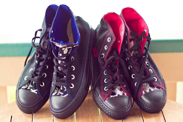Brides Shoes: custom Converse hi-top chucks & Betsey Johnson heels
