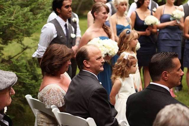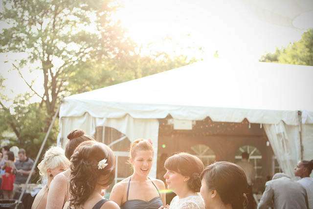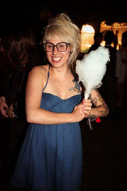 For the few outside vendors we did hire, we made sure that we worked with amazingly talented people who obviously care deeply about their craft, like our photographer Lindsey and caterer Kim. Some of the more unique characteristics of our wedding include an outside secular ceremony performed by a former judge and environmental activist, handmade everything, jeans allowed, vegetarian pigs in a blanket, a cotton candy machine, tattoos, mini birthday cakes for special guests and a hand made vintage inspired wedding dress. The best compliments we’ve received about our wedding have been, ‘Best wedding yet!’ and ‘It was so you!’ ”