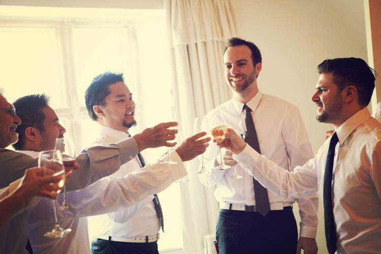 “Olivia & Mark are originally from LA and wanted to give their friend’s and family a quintessentially English experience for their wedding” Lisa told me. “When we woke up in The Cotswolds to the sound of lashing rain, I thought they were going to get the full glory of a British Summer and it would be wellies all round. Their optimism was infectious and everything was set up for an outdoor ceremony in the grounds of Barnsley House, although some bin bags were left on their paper lanterns until the last moment. This has got to be one of the most gorgeous venues in England and the sun came out as Olivia crossed the lawn with her Dad, causing Mark to well up. I loved that she went for full-on glamour with lashes and deep red lips, it went well with her dramatic dress. Her close friend, Josh was the ‘bridesmaid’ and did such a stirling job, I’m thinking of hiring him for other weddings.”