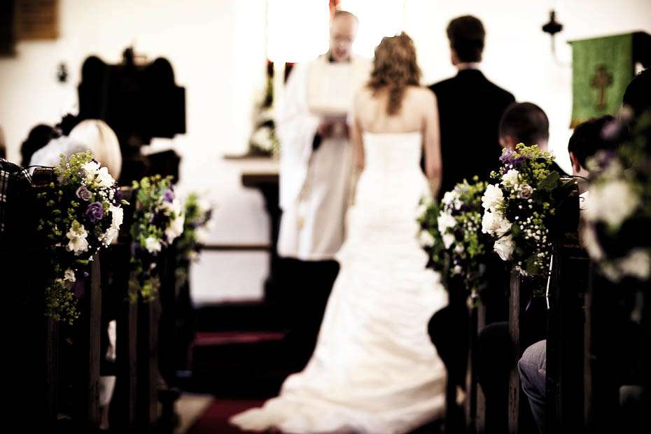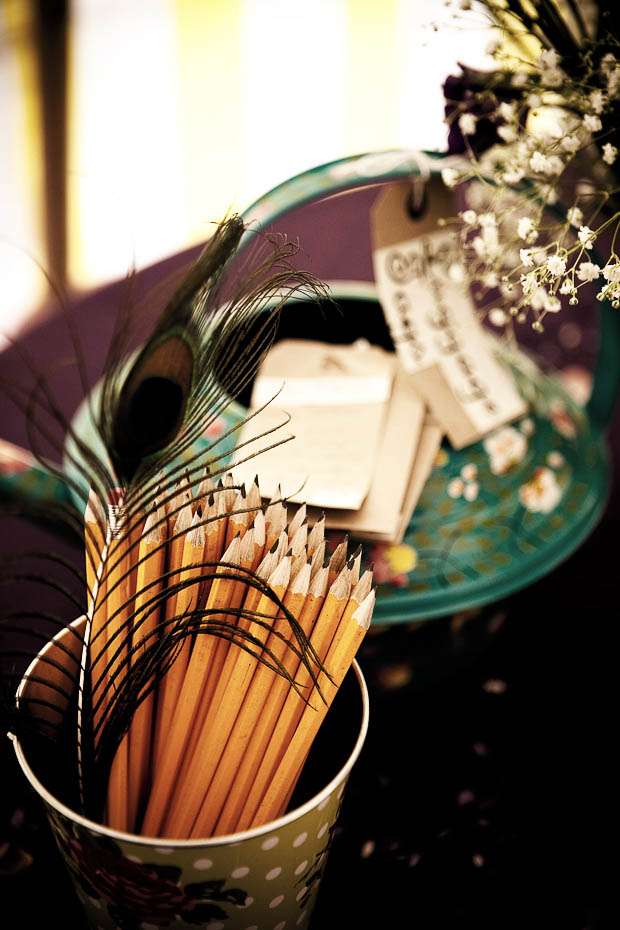 They organised and created a lot of the wedding themselves, as they knew exactly what they wanted – ie something that reflected them and not anyone else. They wanted to create something unique, something different and something quiescently ‘them’. “I am not a big fan of your standard table centre-pieces so I decided that using sprays of different wildflowers would really compliment the style of the wedding” Jenni continued. “We had these both at the church and on the tables at the reception. I spent months slowly collecting various bits and pieces from charity shops and high street shops to decorate the marquee with. I am quite artistic and love interior design, so having the chance to design the inside of a whole marquee was something I was very excited about doing.”