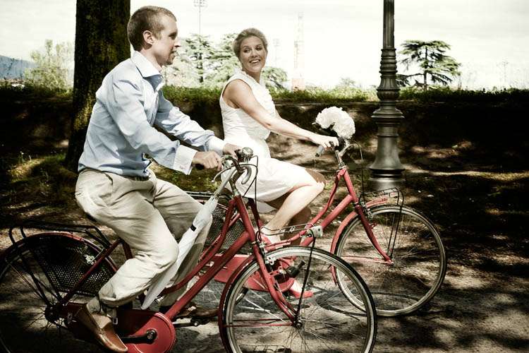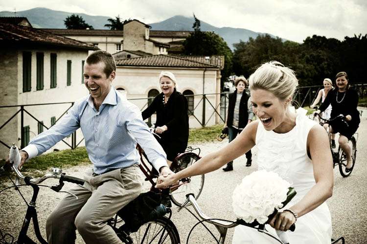 “The ceremony at Lucca Town Hall was of course organised in advance, but lunch, dinner and afternoon entertainment was all put in place almost as the day unfolded!” Jordon told me. “Really heavy rain meant that Mike and Laura wanted to play things by ear; they wanted to hire bikes to ride around the city walls in the afternoon, for example, but left the decision to see what the weather was doing and in the meantime dived into a gorgeous, typically Italian cafe/restaurant for lunch. The rain stopped and they got to ride, so all was good.”