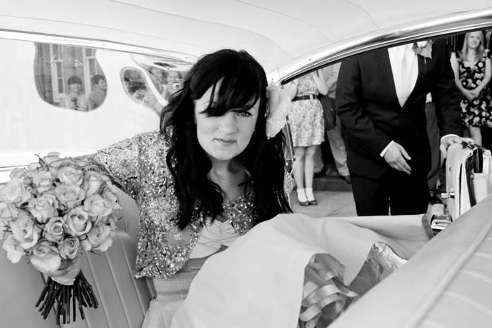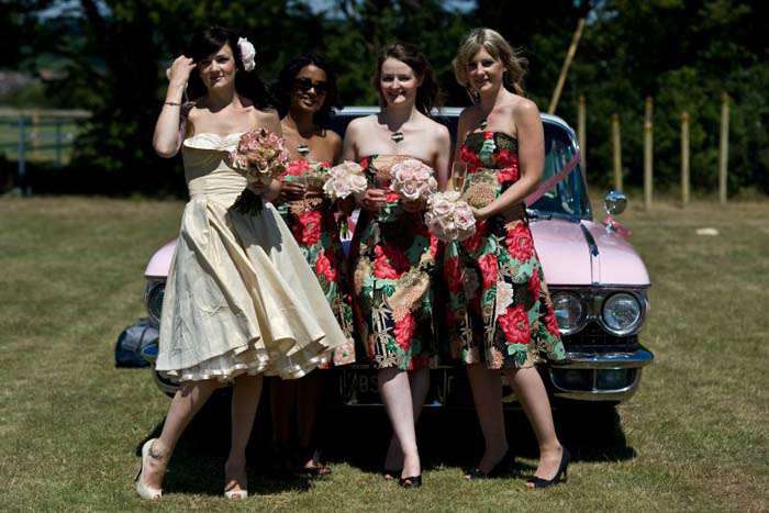 Lucia wore a stunning dress from Rock n Roll Bride favourite, Whirlingturban which she teamed with some amazing Christian Louboutin’s and a stunning vintage sparkly jacket that belonged to her sister. The bridesmaids wore dresses from Get Cutie who specialise in pin up girl patterned dresses!