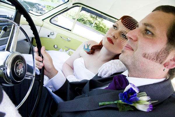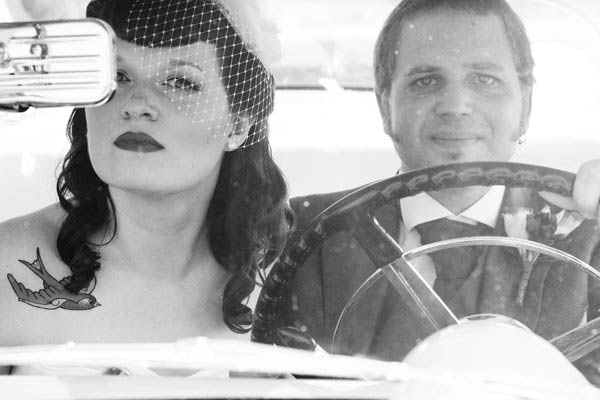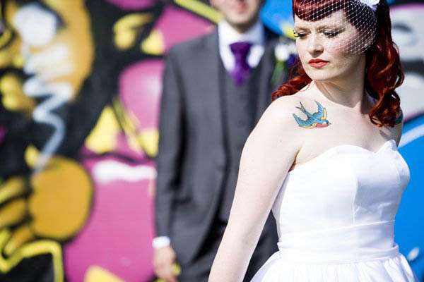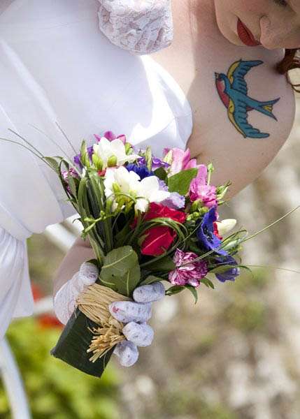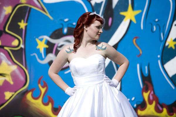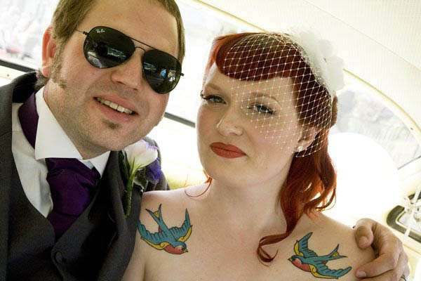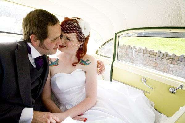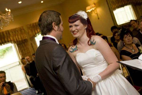 Music, tattoos and 40’s/50’s rockabilly provided the inspiration for Laura & Scott’s gorgeous wedding. Laura looked every bit the rockabilly queen in her Avalon from Dolly Couture skirt and top, teamed with lace gloves from ASOS and leopard print shoes from Mary Jane Shoes which were a bargain at just £15!