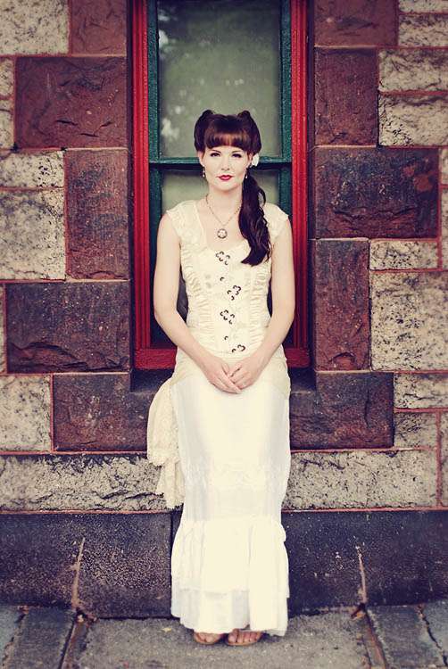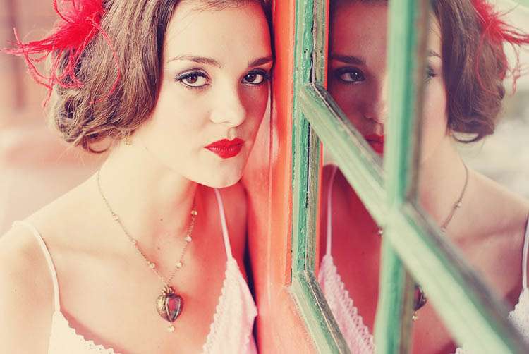 I love the modern twist on the distinctly Victorian styling of this shoot. Layered vintage fabrics, corsets and handmade jewellery have all been offset by different shades of modern red in the makeup and styling. The shoot took place at an old historic train station which, with it’s unique detailing really brought the theme together.