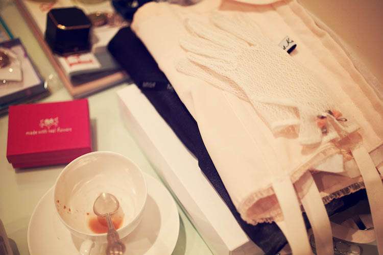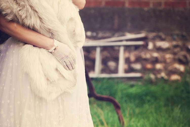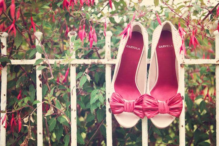 With her dream dress she wore bright red, bowed Kurt Geiger shoes which really added an element of fun to her outfit. In her hair she placed an antique art deco brooch which she got from Gray’s Antiques in London. She also had Edwardian diamond & peridot earrings and a 1950s fur stole from the same place. For the final touches, her bespoke “Mrs Buffone” knickers were from Ell and Cee and her waist clincher was from What Katie Did. Finally, her very favourite accessory was her vintage lace gloves which belonged to her late Granny Josephine Wain. They were very special to her to wear on the day.