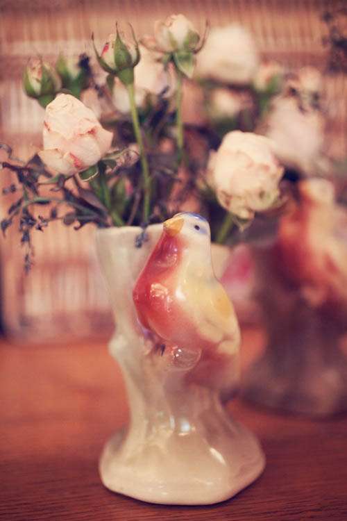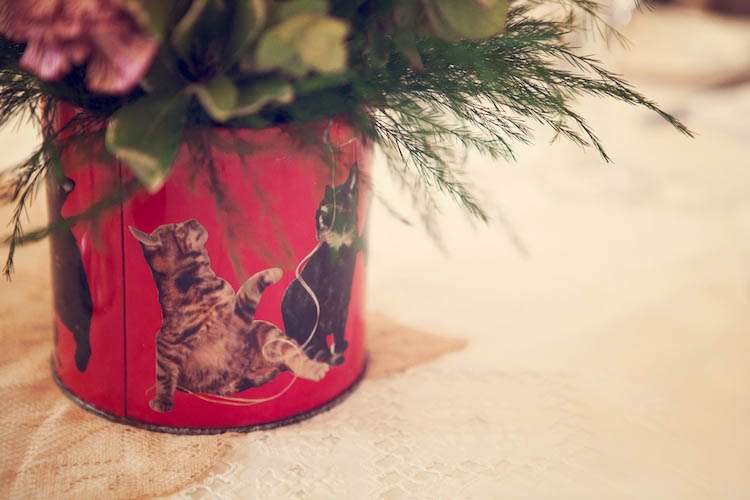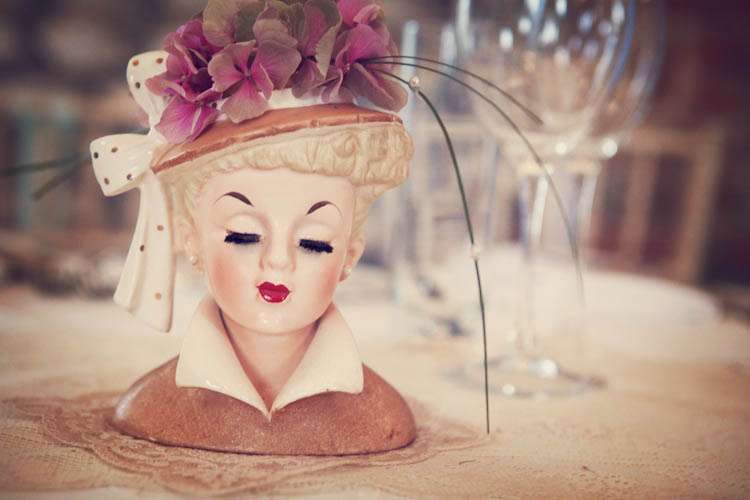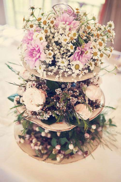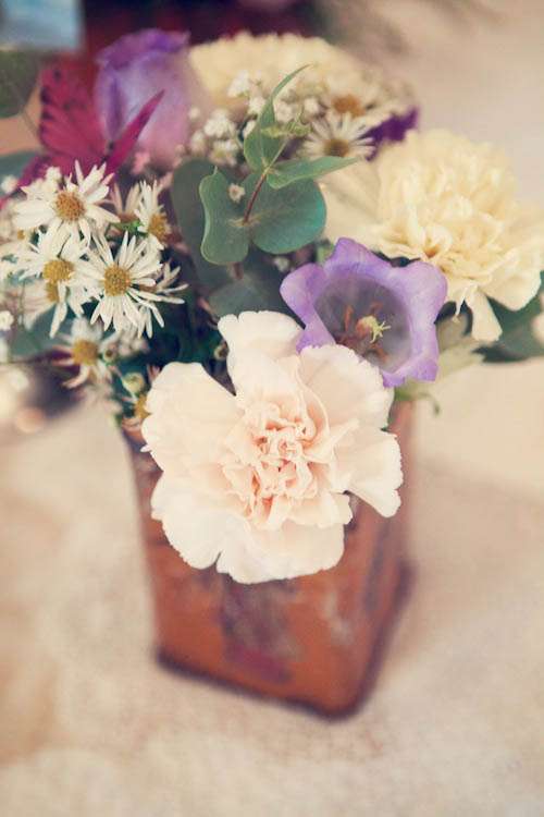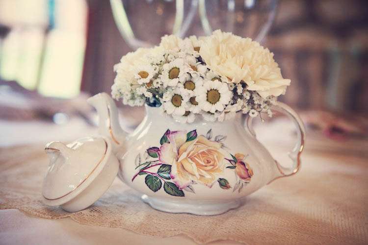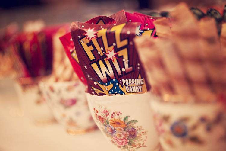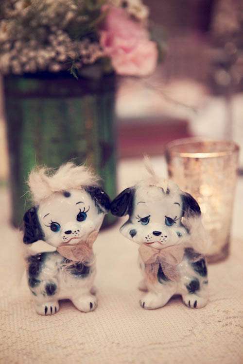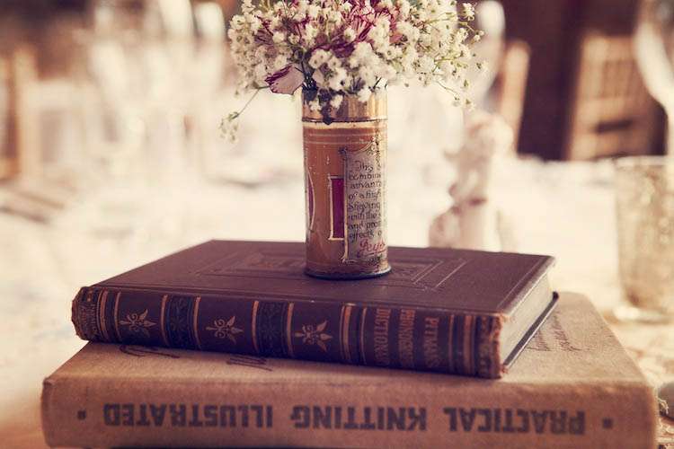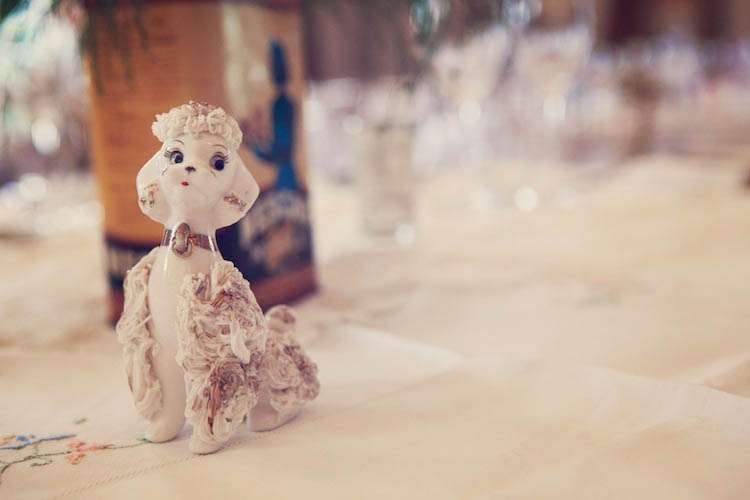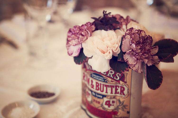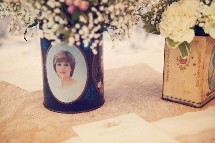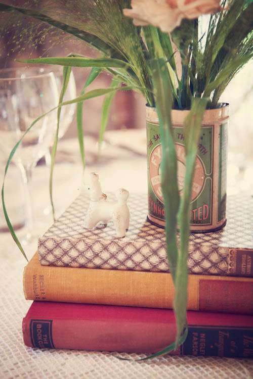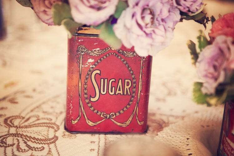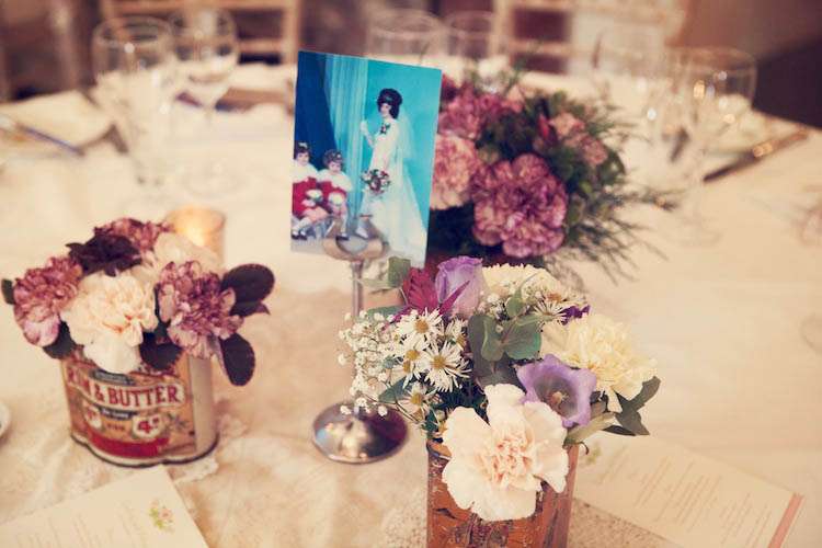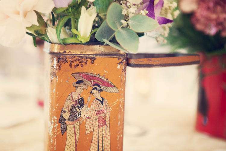 The couple put a lot of DIY details into their day including making their Polaroid cake topper and collecting different vintage tins for the flowers and unusual things such as the lady head vase and bird vases from Ebay. They found a lot at Alfies Antique Market off Marylebone high st in London including unusual 1950’s spaghetti poodles and interesting salt and pepper shakers which they bought for the tables.