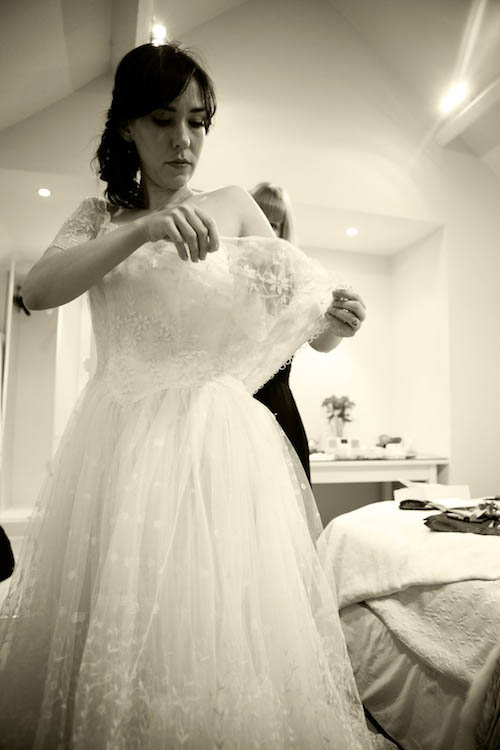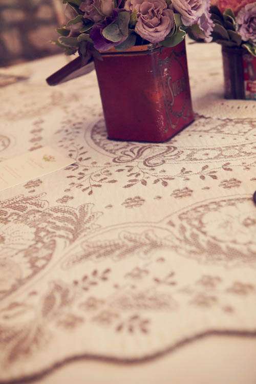 Lindsey wore a vintage dress that she found online at The Vintage Bride. The American site was the first place the bride visited when deciding on what she wanted to do for the wedding and after seeing the beautiful, one of a kind gowns she was sold on the theme. “Finding a dress was one of the first steps I took in beginning to organise our wedding. I first looked on the web and found this site, fell in love with the dress and bought it. A bit risky but the lady who runs the site, Rosie, says that if your dress is not right she will give a full refund which is quite unusual for an online site. So I took the risk. It arrived in a beautiful box tied with a big pink ribbon and it was quite magical moment to open up revealing my dress for the first time, perfectly wrapped including a lovely lavender scented parcel. It was love at first sight.”