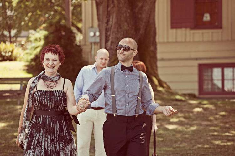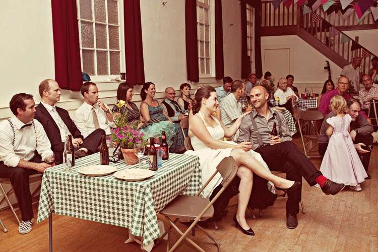 The couple were married outside The Old Hastings Mill Store, which was one of the only buildings in Vancouver to survive the Great Fire of 1886. It is now located near Jericho Beach in Kitsilano. They were married with a view of the harbour, the boats and the mountains – bliss. For their reception they headed to Cambrian Hall.
