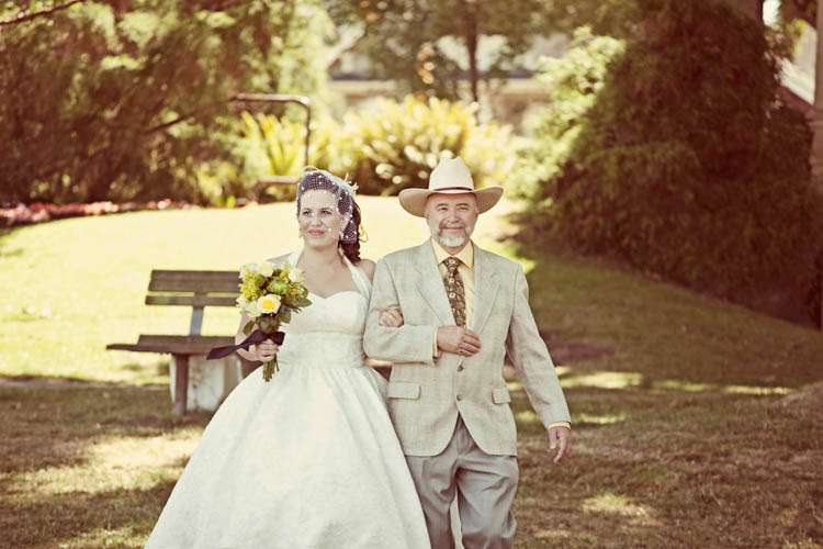 Aaron wore a custom made dress from Dolly Couture and accessories from Farmer’s Daughter on Etsy. To compliment her outfit, her bridesmaids wore polkadot 1950s style dresses and they all had different coloured petticoats underneath. How gorgeous is that?!