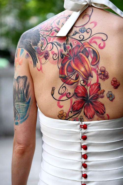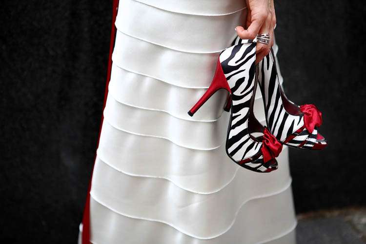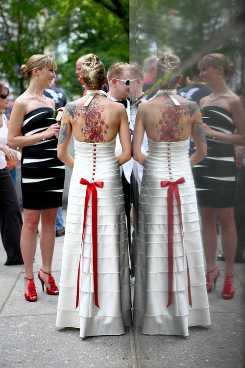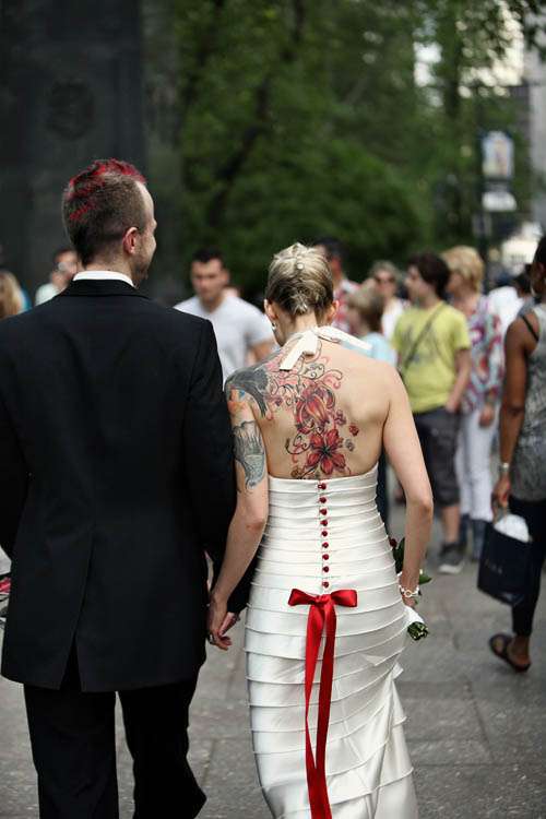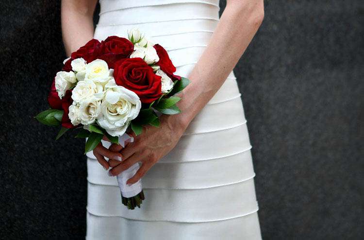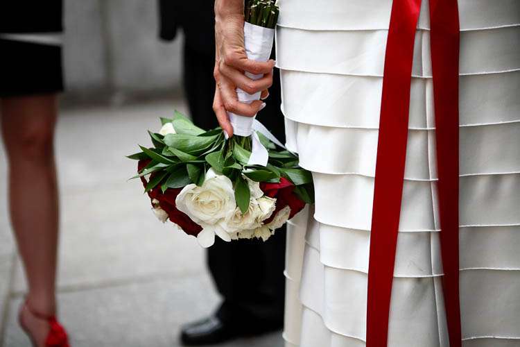 Bride’s Dress: BCBG (red buttons & ribbon added)