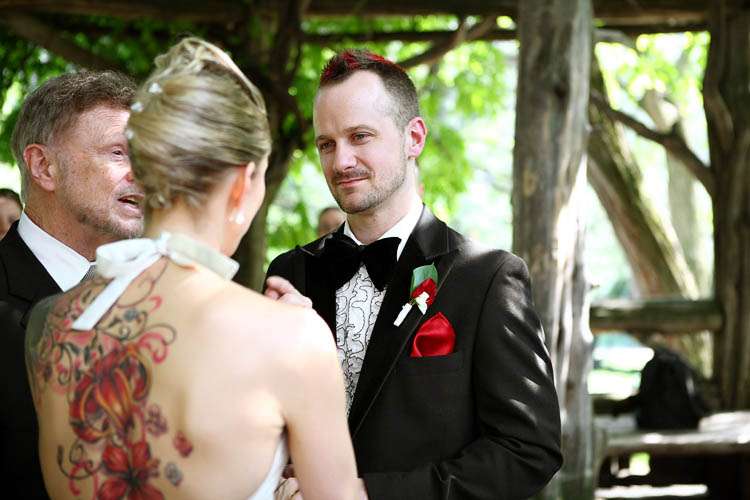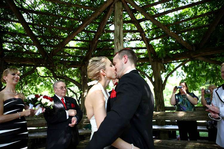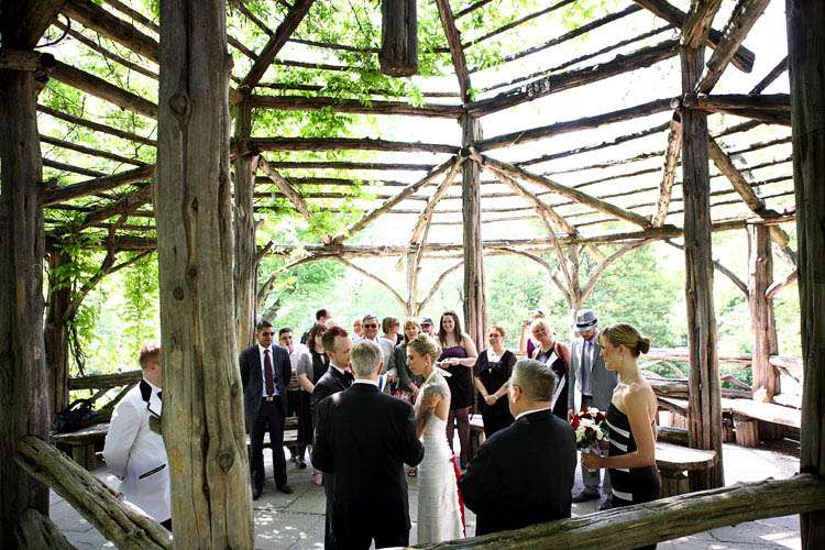 Central Park was the perfect location for them because they wanted to have an outdoor wedding, “We did research online and through the Central Park website I found our wedding planner Julie Lindenman (I Do New York) who organized the ceremony for us,” she continued. “We looked at different locations within the park but loved the rustic look of the Cop Cot area. We also liked that it had seating for everyone as our group was small (only 25 people). We had a cellist who was originally supposed to play our 3 songs but we were so grateful he played the entire 45 minutes while we were waiting for my mother to get there.”