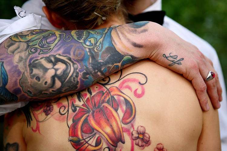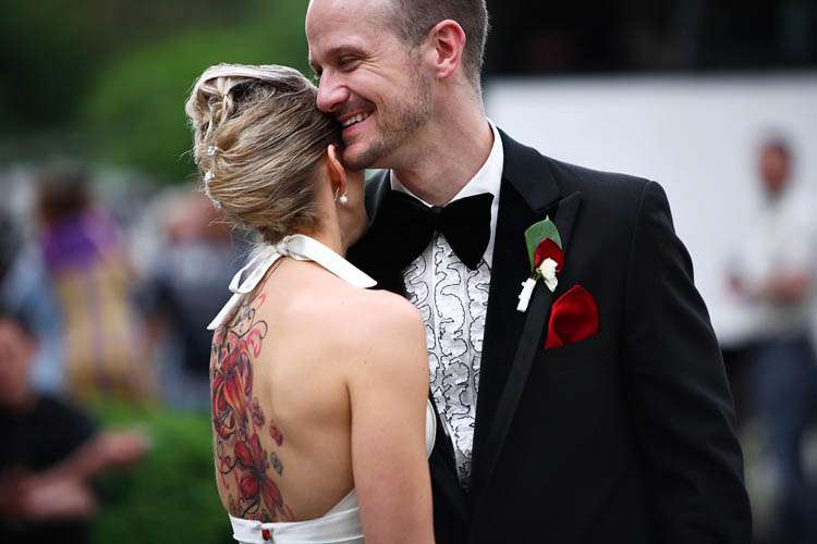 Music was really important to the couple. The prosessional music was Child of Mine by Guns n’ Roses, Angie walked down the aisle to All I Want is You by U2 and the couple walked out to Hallelujah by Leonard Cohen.