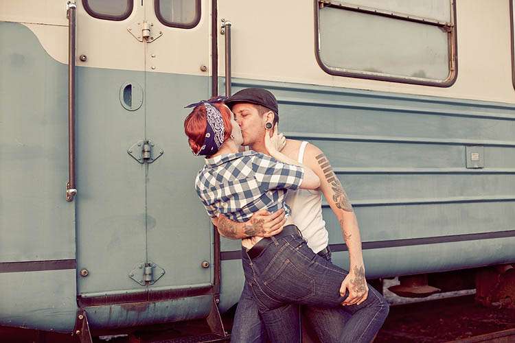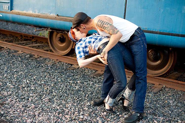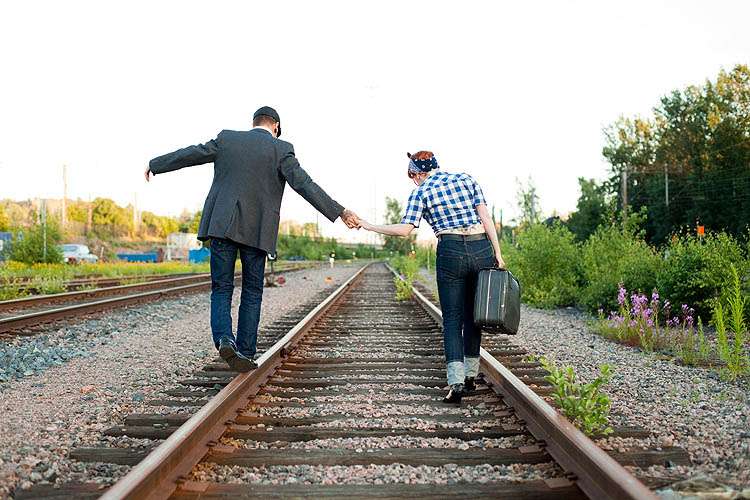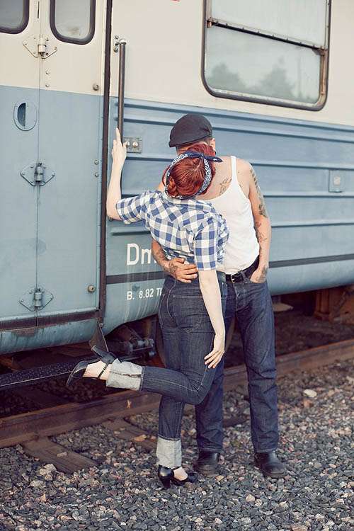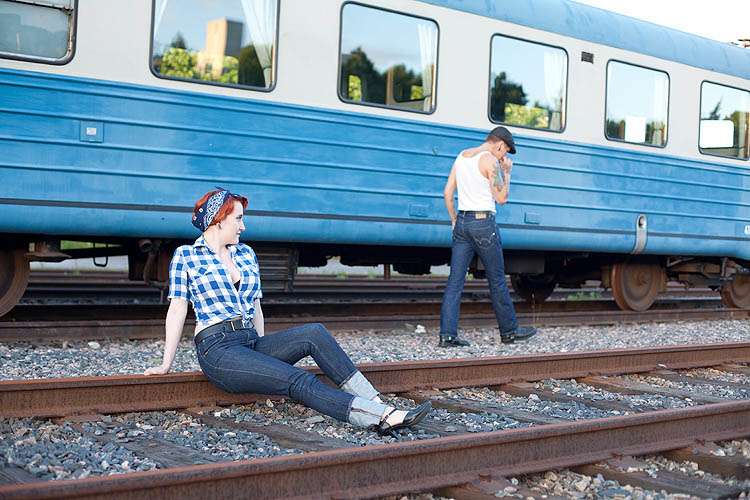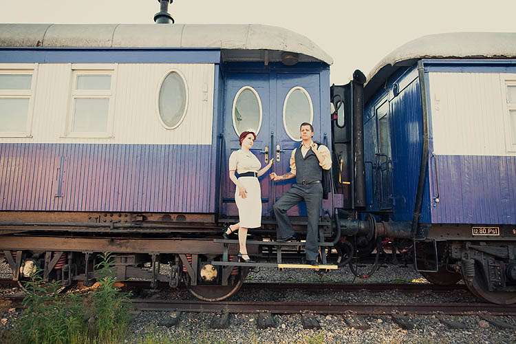 Australian photographer Gemma Clarke was lucky enough to find Emilia & Ville who wanted a retro/vintage style engagement shoot in Helsinki, Finland this July. The train yards in Pasila played host to their fabulous fashion-led shoot and the couple were really involved in the concept and styling of the whole thing.
