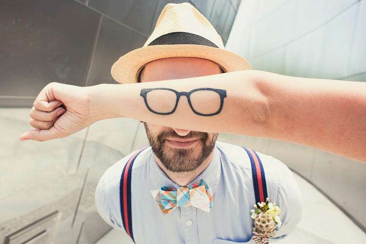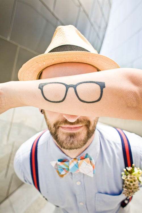 As you can see, the couple both have fabulous ink and wanted to share their awesome artists with you. Kaori’s killer glasses tat (hello, I love you) was done by Broken Art Tattoo, Silver Lake, Los Angeles and Alex’s kick ass sleeve was done by Traditional Ink, Hollywood.