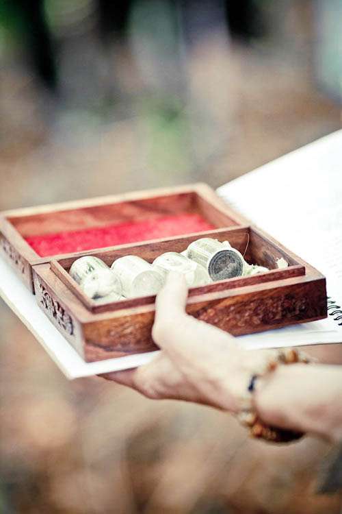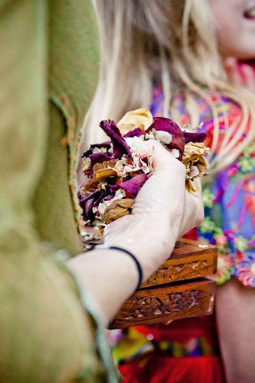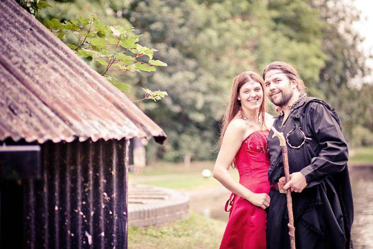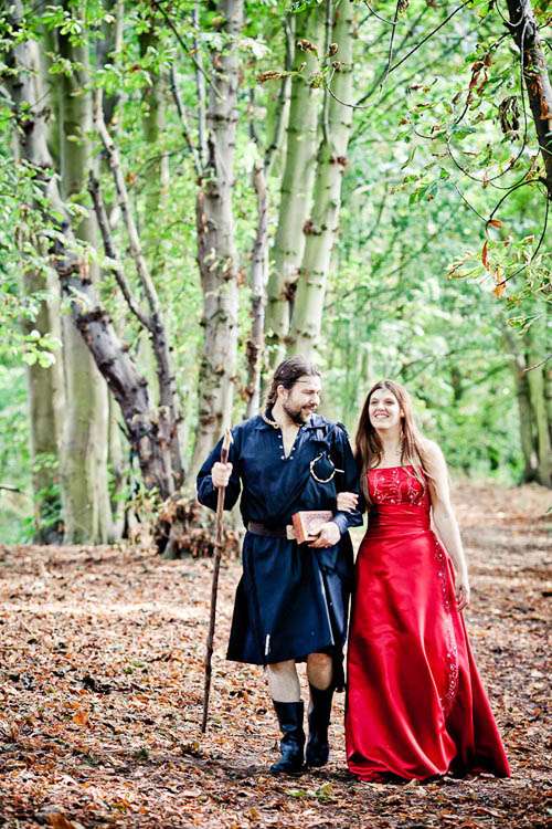 Finally, the exchanging of the rings was a very important part of the day for the couple. Rachael explained, “Rafe and I decided that we would exchange wedding rings at the registry office but didn’t want anything from that to encroach on our actual wedding day, so it ruled out exchanging the rings at our hand-fasting. We decided to exchange torqs instead which are traditional Celtic neck rings. Ours were made by a company called Crafty Celts. Rafe wanted wooden rings for the registry office but I work in health care and have to constantly wash my hands (not good for wooden rings) also my engagement ring is made of titanium and due to its hardness we couldn’t have anything softer against it. However we found this company to make our rings of wood AND titanium called Koa Wood Rings!”