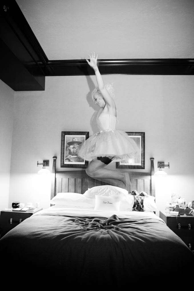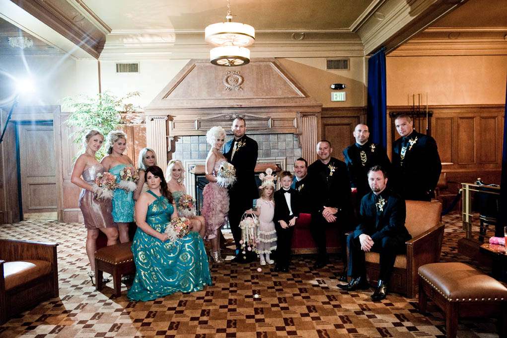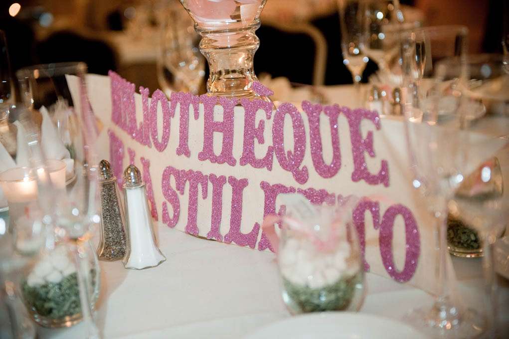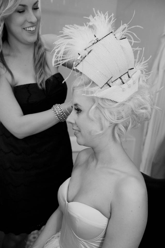 Danielle wore four…yes FOUR different outfits (full list below!) – a different one for the ceremony, cocktails, dinner and dancing. A lot of the incredible decor and styling was also a DIY effort from Danielle who owns Curtsy Bella, a boutique that sells all things sparkly. She made the crystal bouquets, the men’s steam punk-esque boutonnieres, the pom pom princesses tiara & bucket and the table signs. She also put together all the photo booth props.