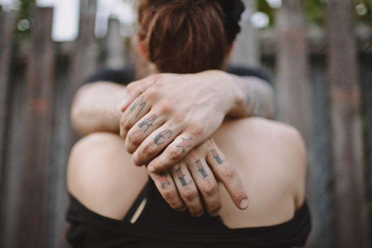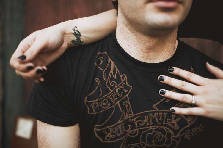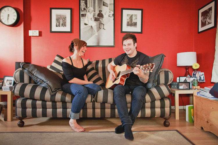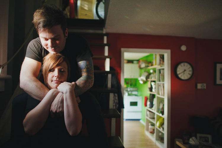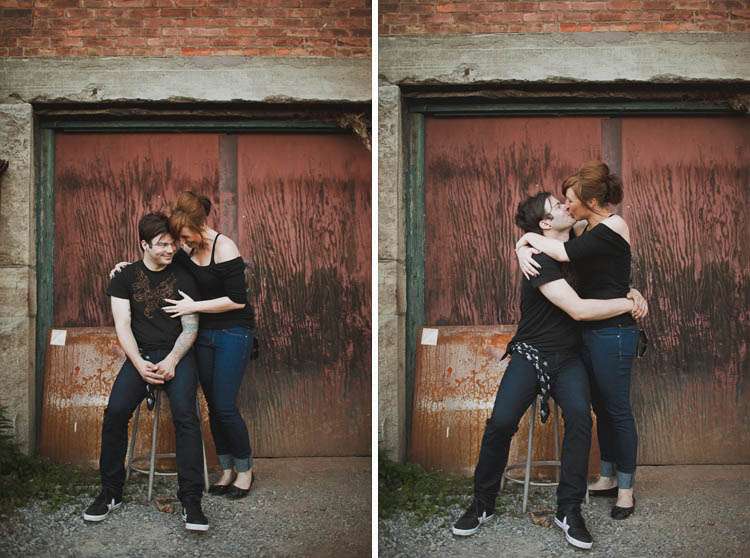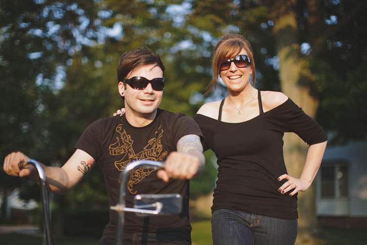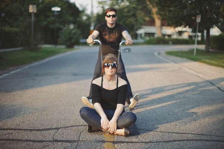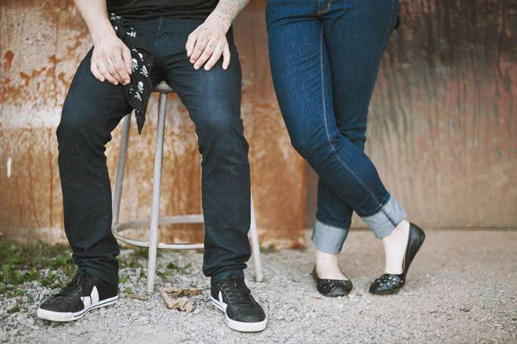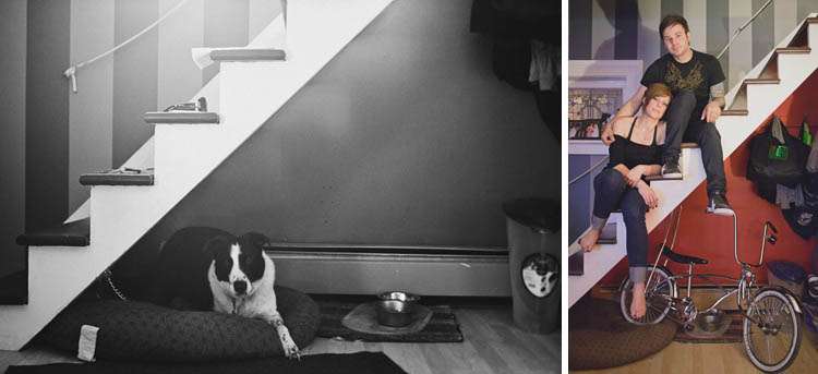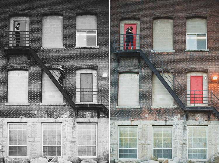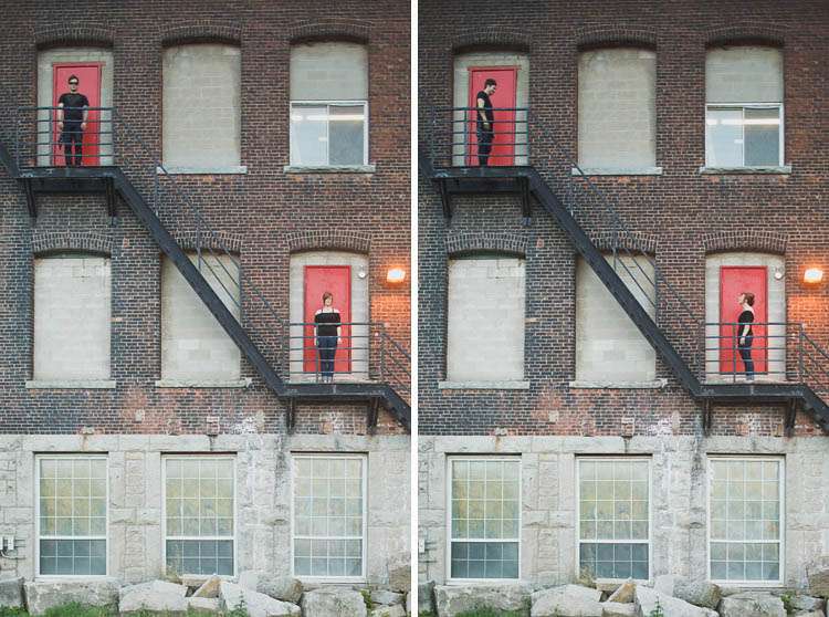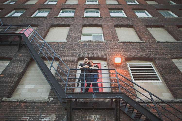 The shoot took place around the couple’s home, in the neighborhood park and in an old building with a cool looking fire escape.