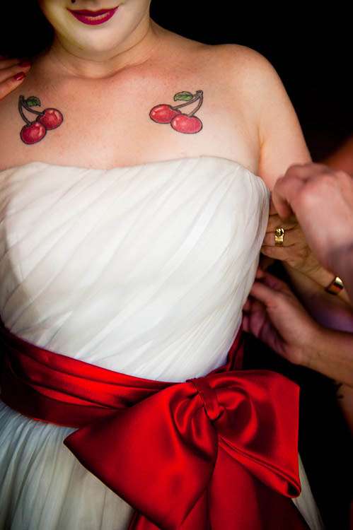 “Andy is the upright bass player and vocalist for one of the few Rockabilly bands in South Africa called Reverend Wright and the Mystery Train Gamblers,” Jen explained. “We pretty much live, breathe and eat rockabilly even though it is still so small in this country. We just wanted to be ourselves without having a boring and stiff wedding day. Andy designed all the menu/name tags/invites etc, we stuck to an old school tattoo theme for that, and everything else we just stuck to what I liked, and what shouted Andy & Jen.”