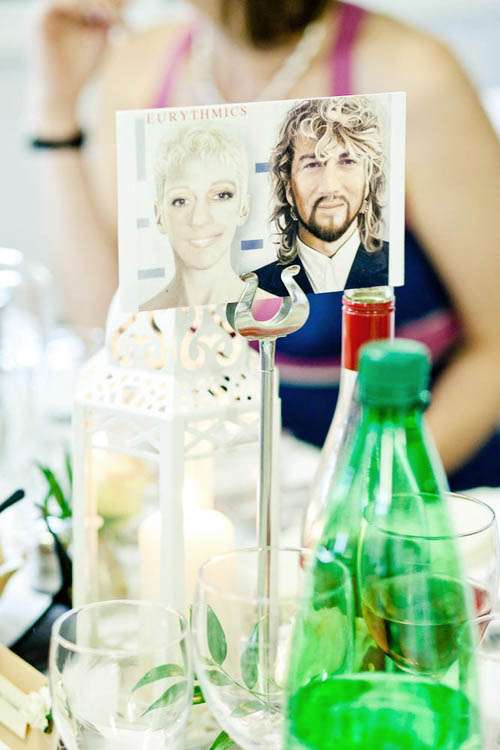 “We both love music so we added this to the wedding with table names being famous duets. Our table place cards were our faces super imposed into duets and we had “Rockaoke” our band so that our guests could live the dream for a night and get up and belt out some tunes with a live band. All the music throughout the day was chosen really carefully by us….we had Irish music in the church for ceremony to go village old (robin hood) feel of church, we walked out to O’Carolan’s concerto which is an irish jig. The reception music was a mixture of reggae/brazilian beats etc – feel good holiday music and it did briefly coax the sun out for us!!Music during dinner was 40’s and 50’s feel good music which we knew parents and their friends and grandparents (who sadly are no longer with us) would love. The dancing playlist after the Rockaoke was a compilation of requests from our guests.”